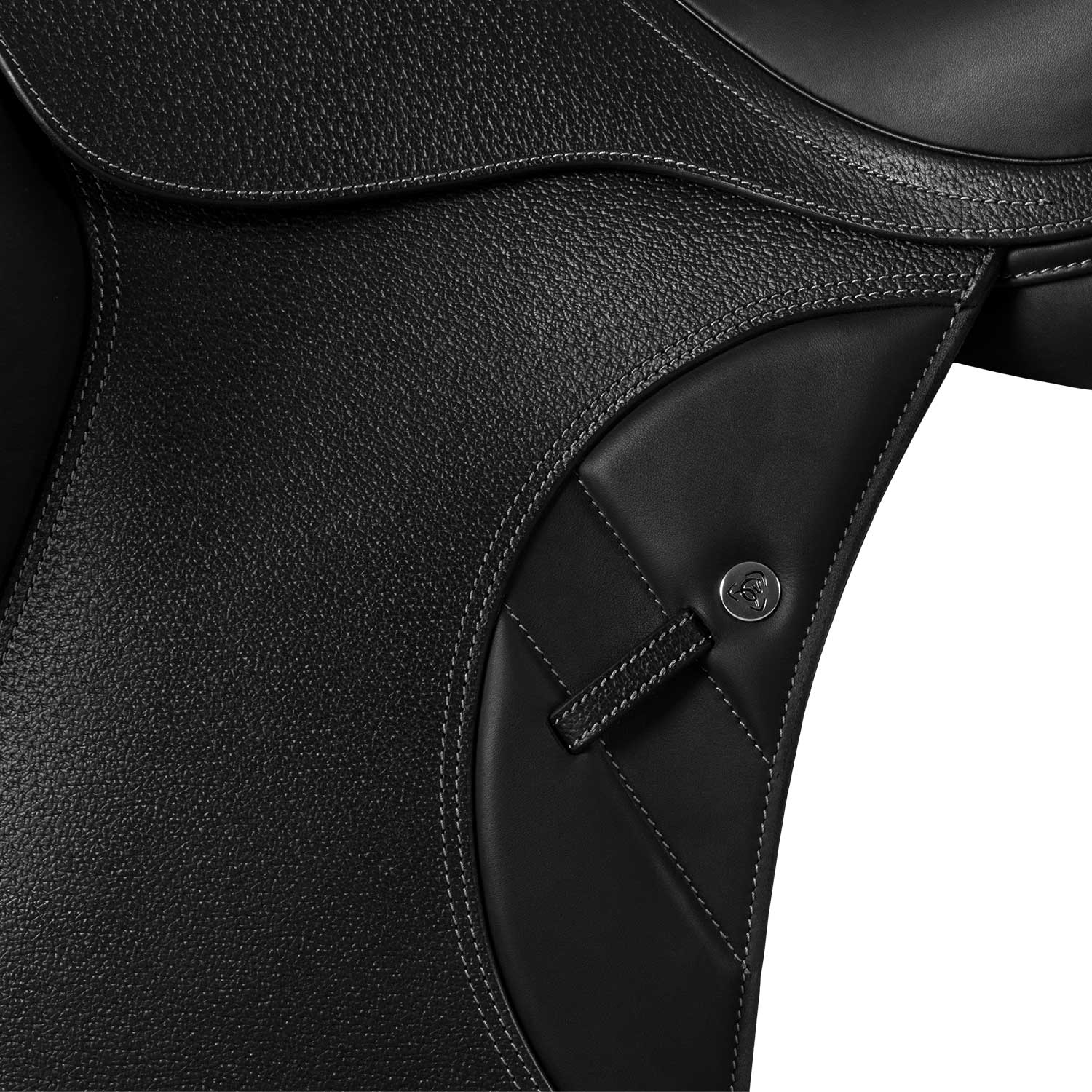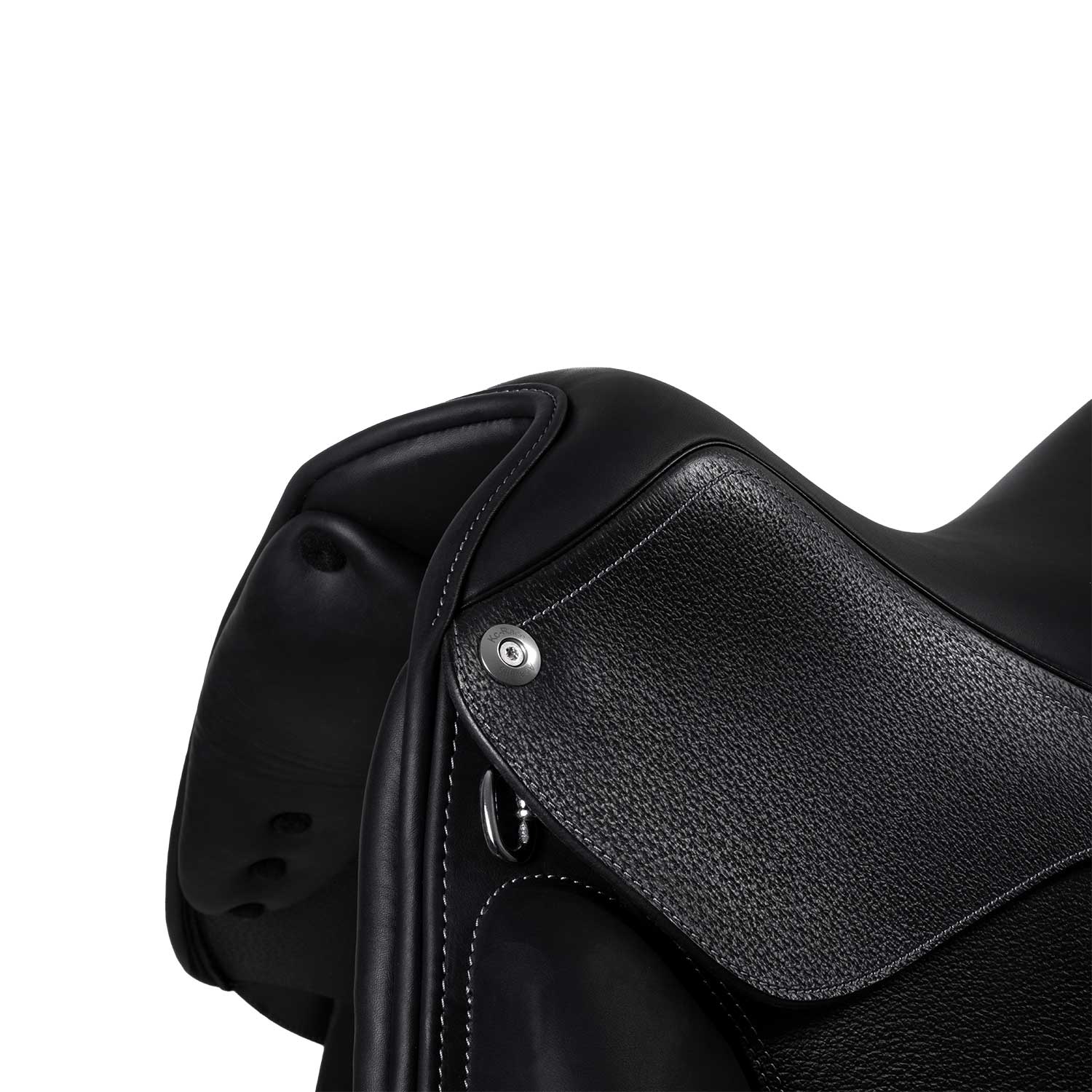 L'elemento rivoluzionario di questa sella è l'arcione in Kevlar-carbonio, una combinazione di materiali avanzati che offre il massimo comfort sia per il cavaliere che per il cavallo. L'arcione presenta una parte centrale elastica, con un cuscinetto in gel che assicura il comfort del cavaliere, e una zona perimetrale progettata per conferire una rigidità progressiva, permettendo all'arcione di seguire naturalmente i movimenti del cavallo. Questa combinazione di kevlar e carbonio rende l'arcione praticamente indeformabile nel tempo, garantendo una resistenza meccanica straordinaria e leggerezza.