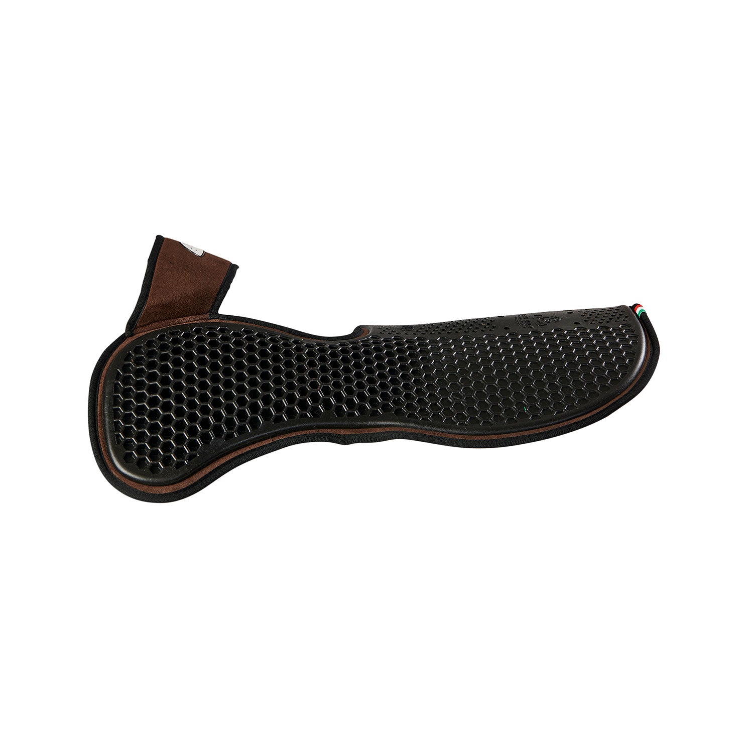 Questo pad unisce le proprietà antiscivolo, ammortizzanti e traspiranti dei modelli in gel esagonale Acavallo® con un rivestimento in camoscio nella parte inferiore.