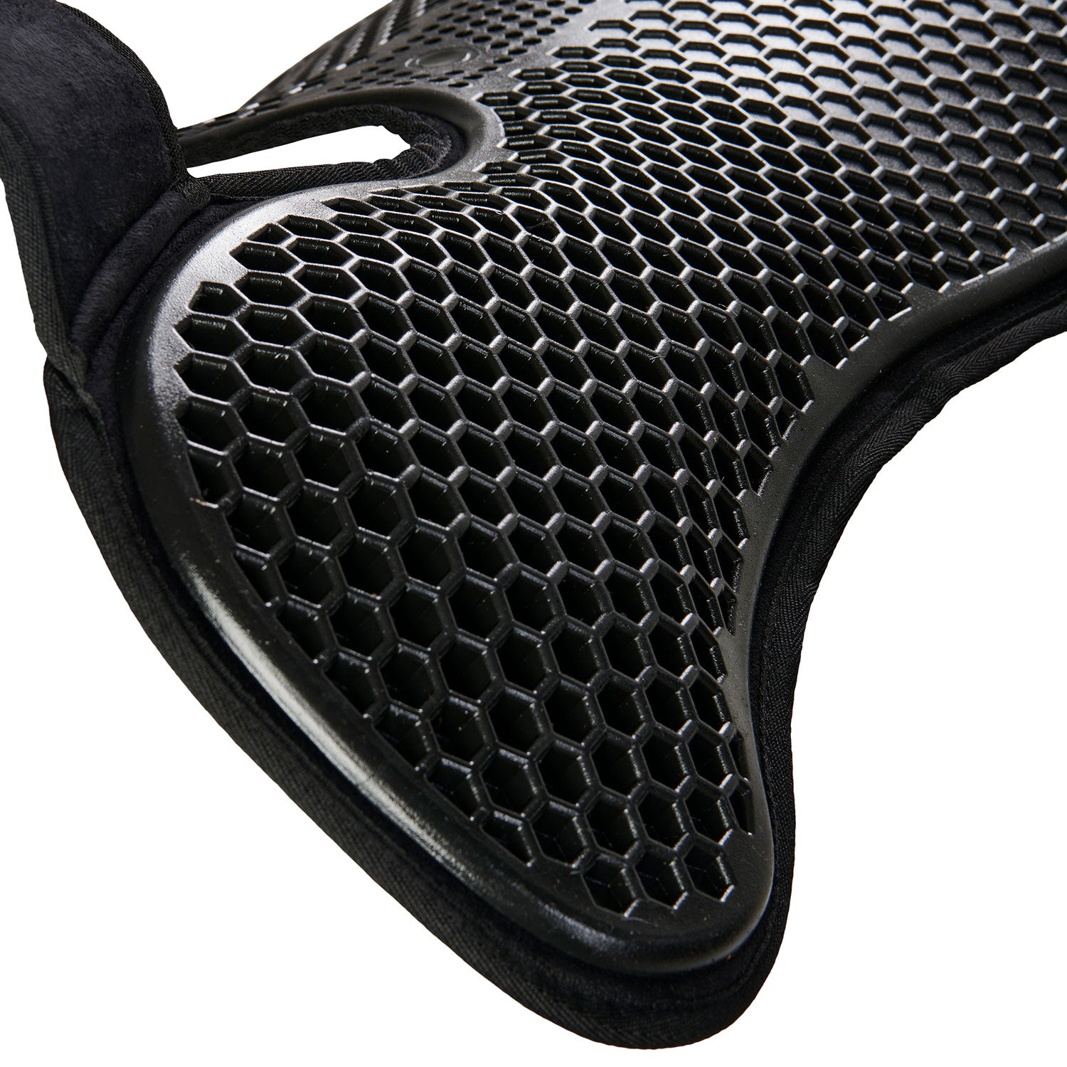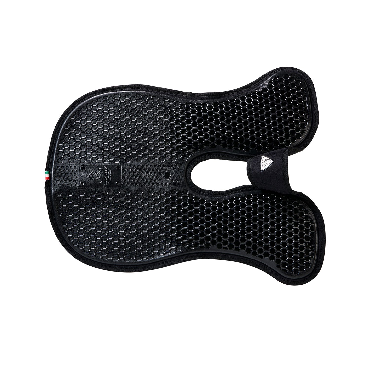 Grazie alla sua forma esagonale, il gel compresso all'interno del compensatore crea un cuscino d'aria sotto la sella, adattandosi a qualsiasi stile e dimensione delle selle inglesi.