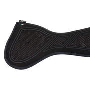 La superficie è traforata con fori e strisce ergonomiche per favorire la massima traspirabilità, mentre gli inserti in silicone garantiscono una stabilità antiscivolo tra compensatore e sella, anche durante l'attività intensa.