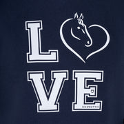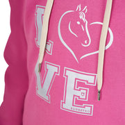 Felpa da bambina con cappuccio regolabile in morbido pile misto cotone, dal tocco casual arricchito da dettagli distintivi come la stampa sul petto raffigurante la scritta Love con il muso di un cavallo fine line.