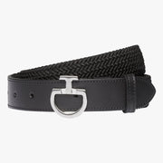Questa cintura per donna Cavalleria Toscana è realizzata in rayon elasticizzato. E' realizzata in pelle intrecciata, mentre la parte finale è in pelle con fibbia con logo in metallo. La cintura è sottile ed elastica, non impedisce i movimenti durante l'attività sportiva.