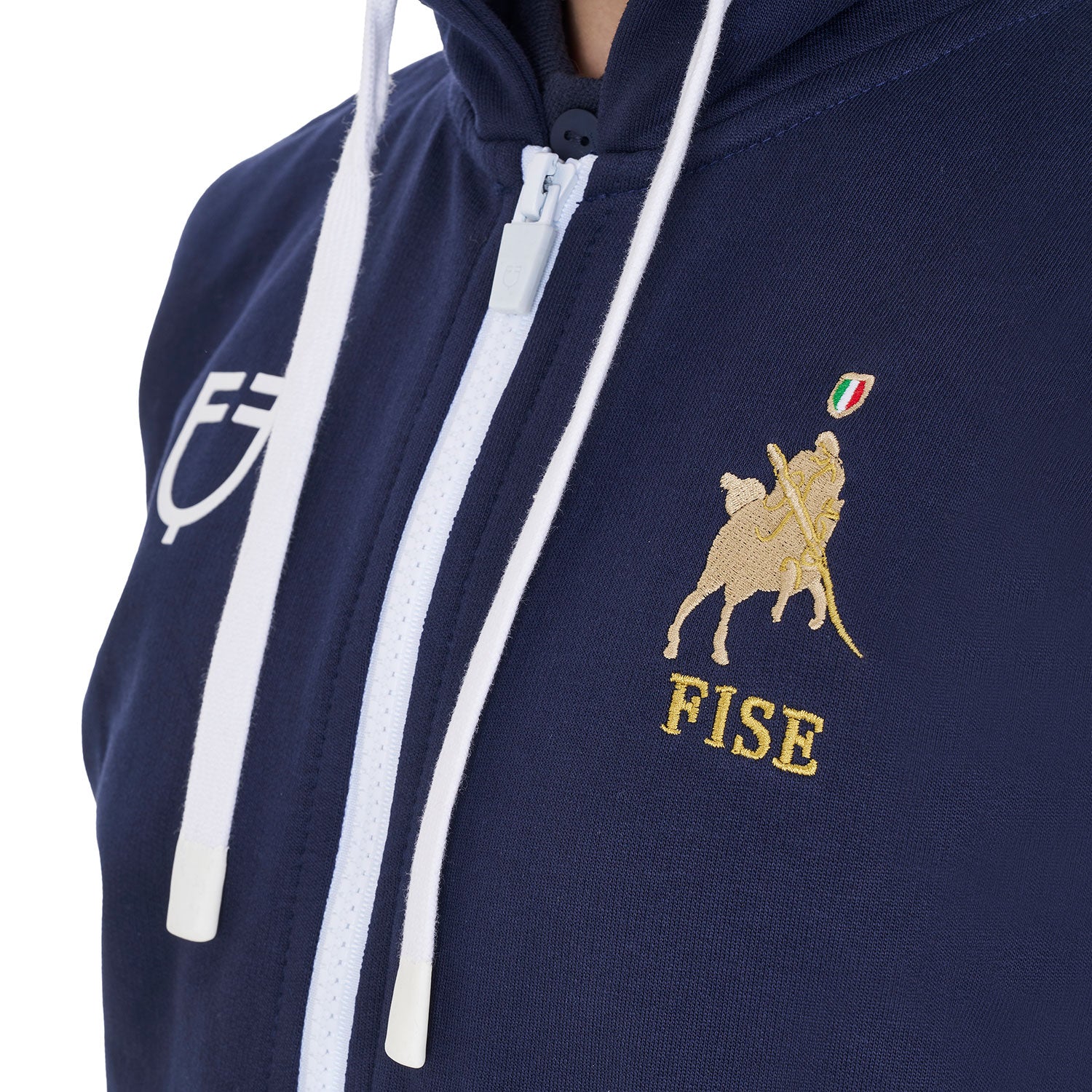 Felpa bambini Equestro X FISE realizzata in morbido cotone con pratica zip frontale antivento e cappuccio regolabile, per offrire al cavaliere un'impareggiabile comfort.