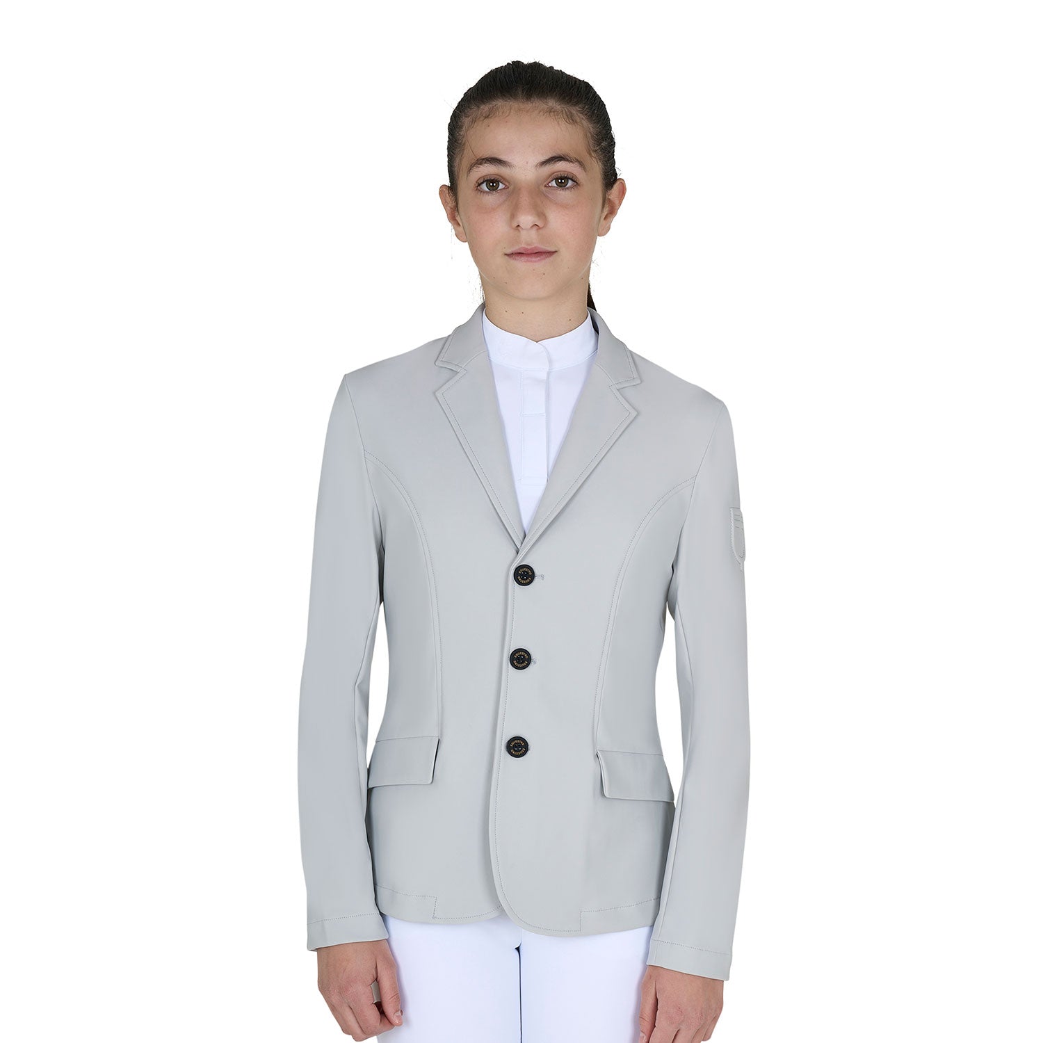 Giacca bambini slim fit modello Girasol realizzata in tessuto tecnico traspirante, morbido ed elastico, per una maggiore libertà di movimento, pur mantenendo l'eleganza tipica dei prodotti Equestro.
