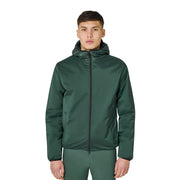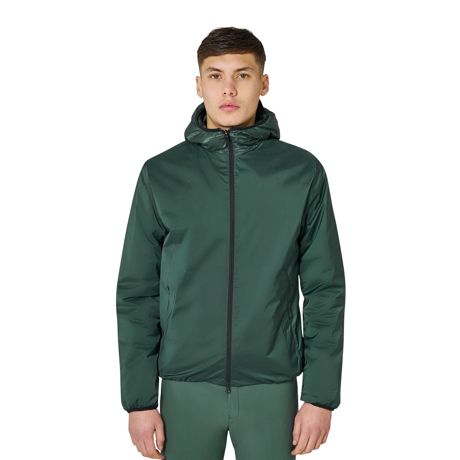 Completano il capo la chiusura frontale con zip a tutta lunghezza, le finiture elasticizzate logate sui bordi per un migliore isolamento e il cappuccio.