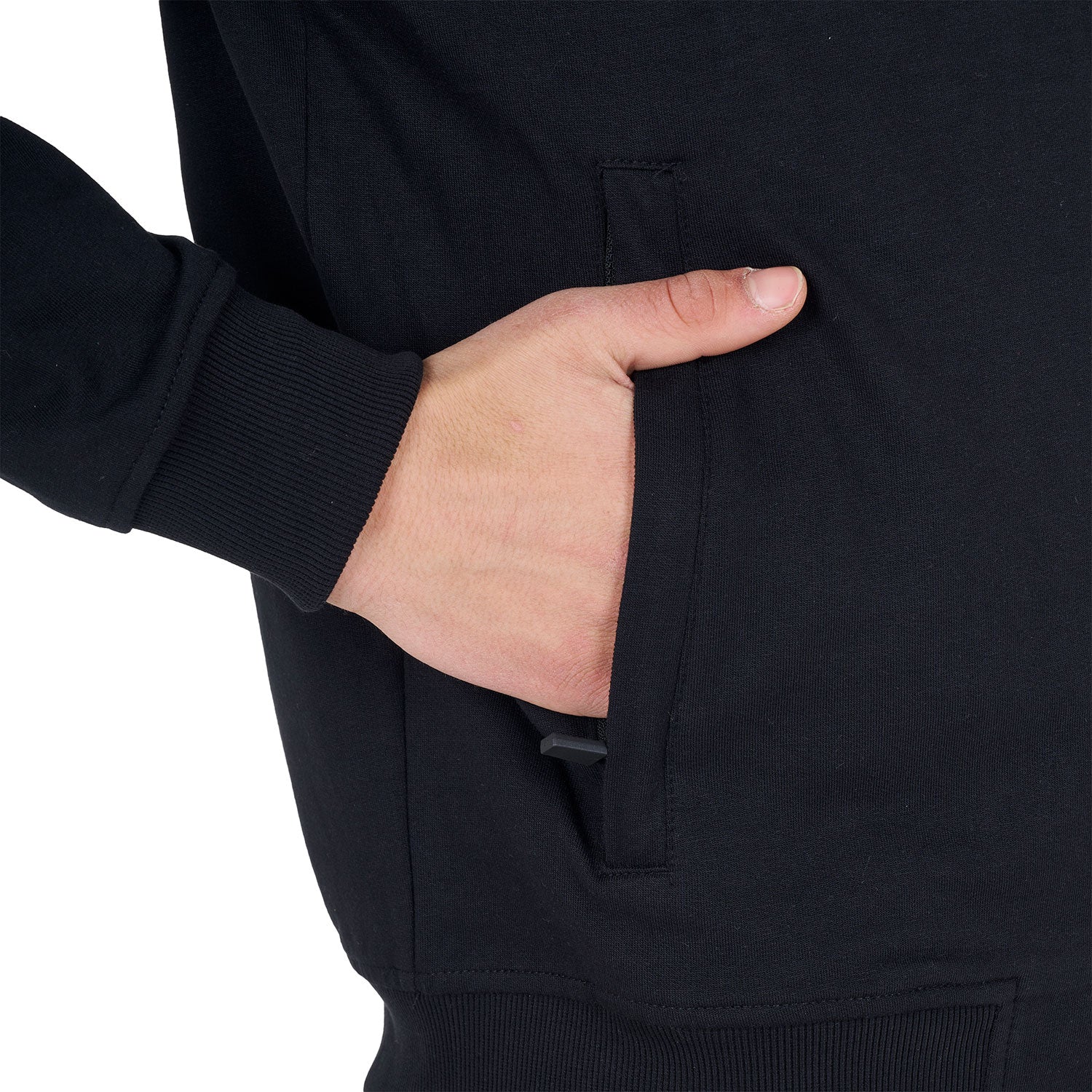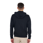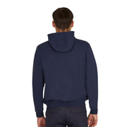 Felpa da uomo con cappuccio regolabile con cordini elastici, full zip e tasche laterali. La zip frontale, oltre a essere una caratteristica funzionale che consente di regolare la temperatura, aggiunge un elemento di modernità e versatilità al design del capo.