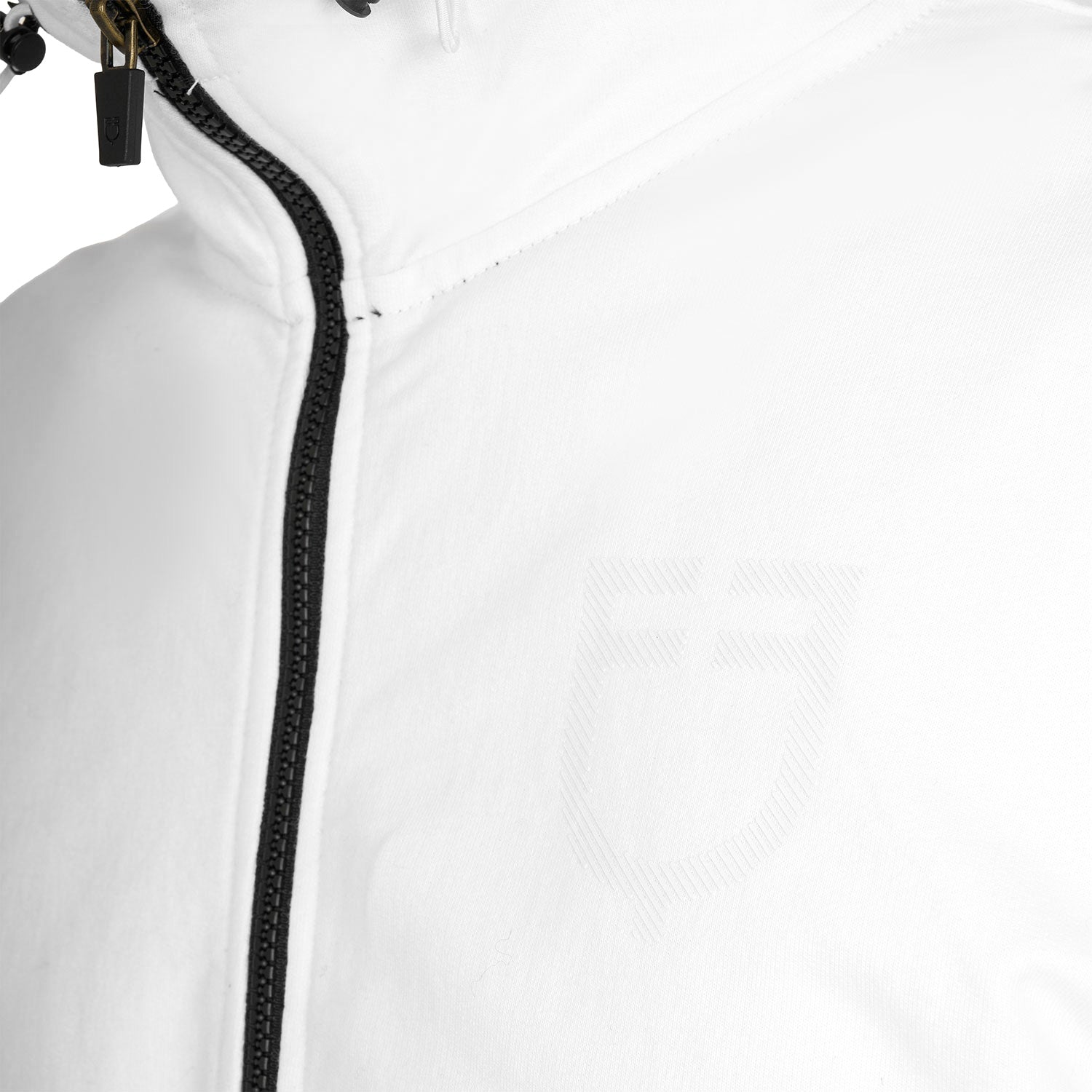 La felpa è impreziosita da delicate rifiniture a contrasto e dal logo Equestro sul lato sinistro del petto realizzato tono su tono con texture glossy.