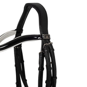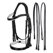 Briglia inglese da dressage in cuoio superiore, frontalino bombato, completa di redini in gomma