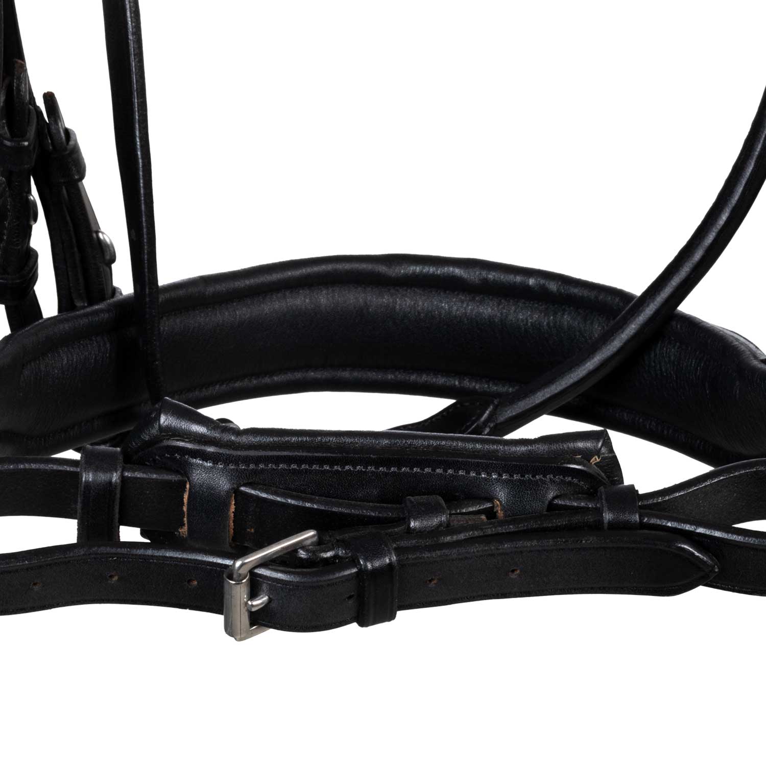 Realizzata con pelle di vitello italiana di altissima qualità, finemente lavorata in forma tubolare, questa testiera incarna l'eccellenza dell'equitazione.