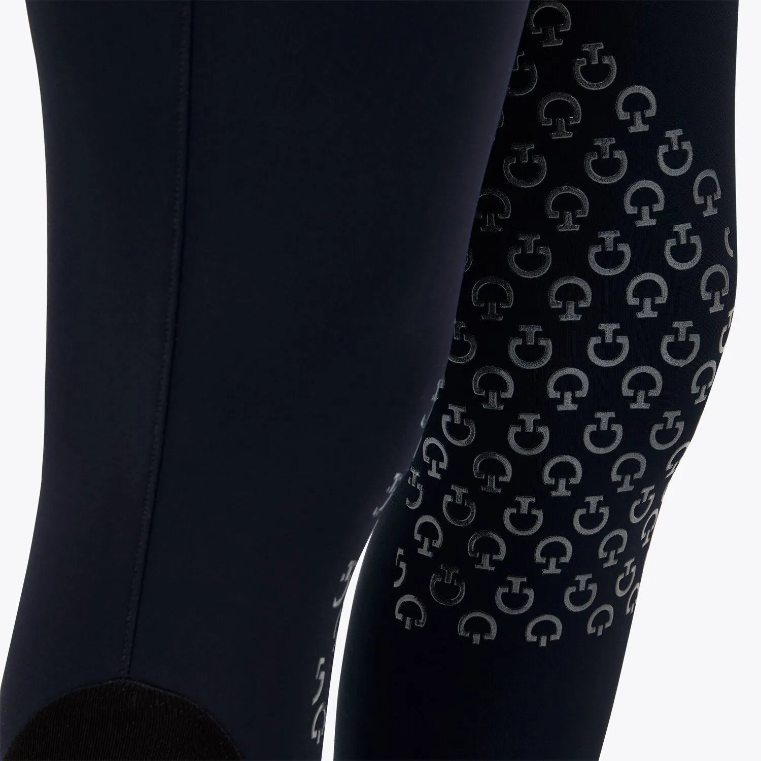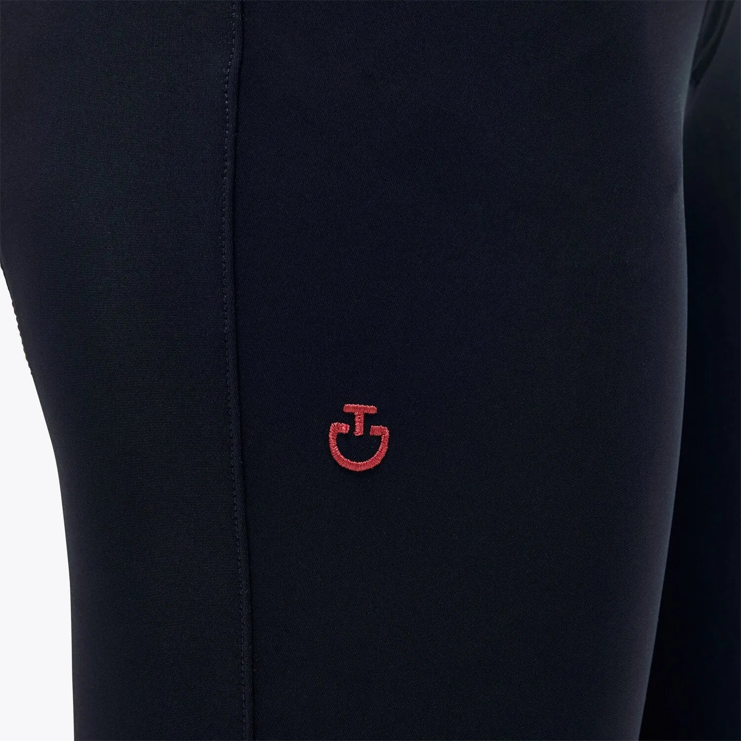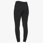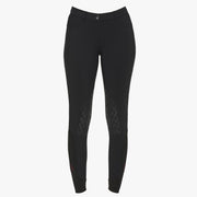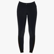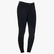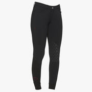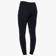 Questi pantaloni da donna per equitazione sono realizzati in tessuto tecnico bi-stretch. Le caratteristiche tecniche del tessuto garantiscono la massima traspirabilità e libertà di movimento: aderisce perfettamente al corpo, senza alcuna costrizione. Il grip trasparente all'altezza del ginocchio permette un'ottima stabilità sul cavallo, mentre i calzini elastici decorati con logo vestono comodamente sotto gli stivali. I pantaloni presentano due tasche laterali e un chiusura con zip e bottone.