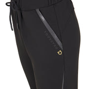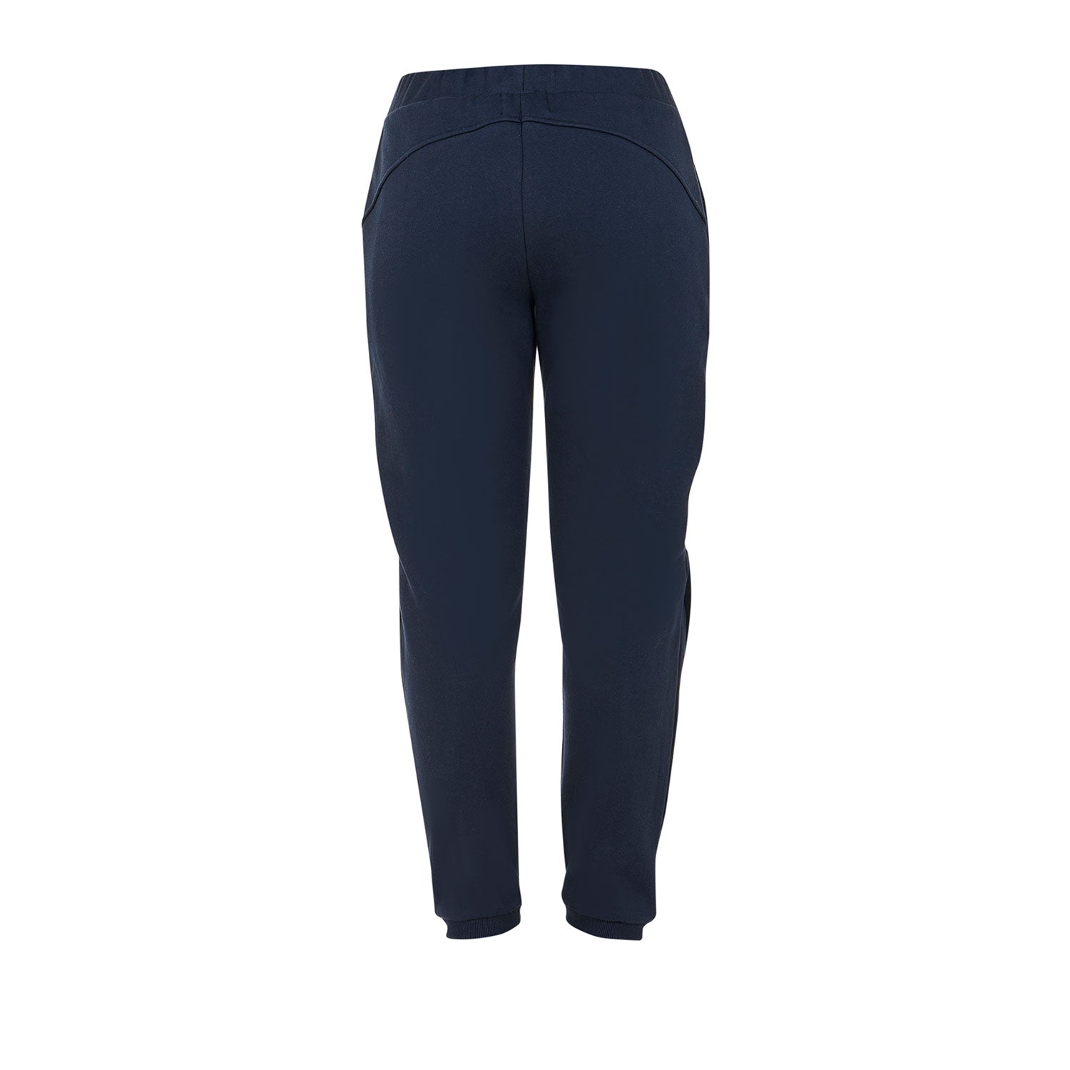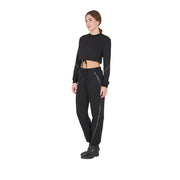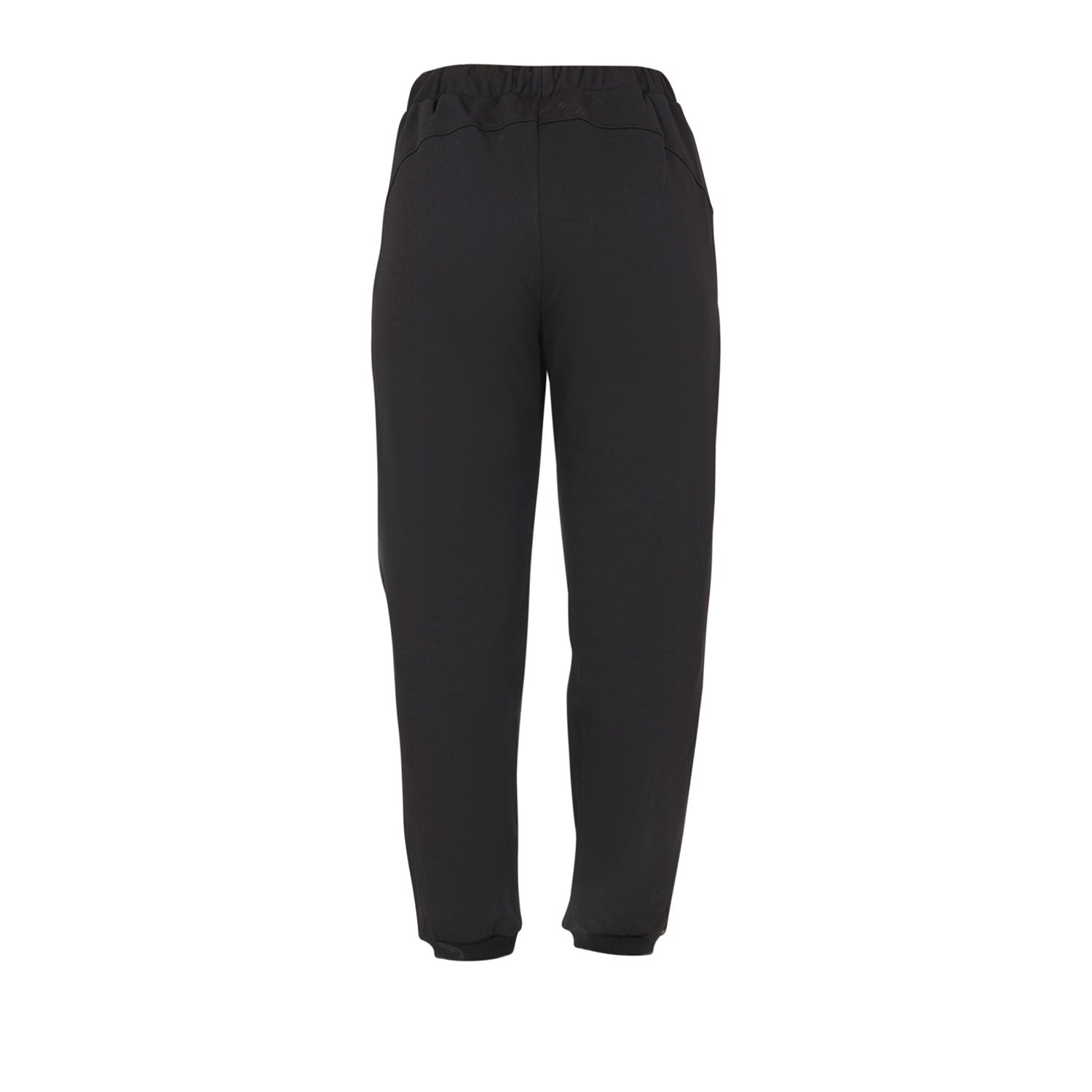 La fascia in vita elasticizzata e regolabile garantisce una vestibilità personalizzata, consentendo libertà di movimento senza pari. I polsini alla caviglia a costine aggiungono un tocco di eleganza e mantengono la forma in modo impeccabile.