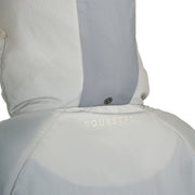 Il capo è dotato di cerniera frontale per una chiusura sicura e funzionale, e di due ampie tasche con zip, ideali per custodire gli oggetti essenziali durante l’attività. Il cappuccio estraibile con coulisse consente di adattare il capospalla alle diverse esigenze, offrendo ulteriore protezione da vento e pioggia.