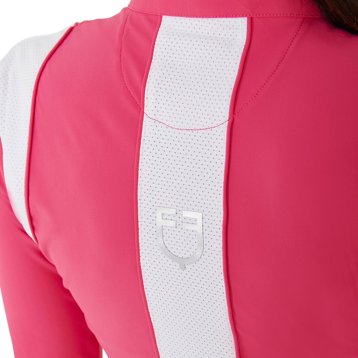 La polo è impreziosita da una chiusura a zip 3/4 con sistema antivento e logo Equestro sul colletto.