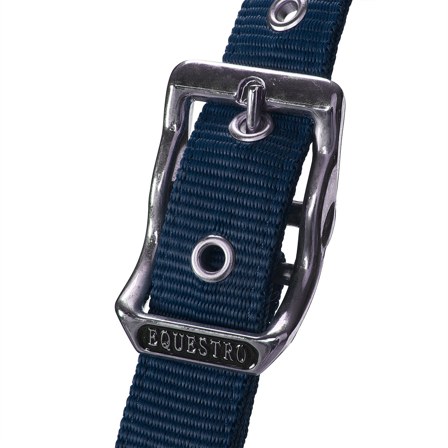 Dotata di fibbie satinate ultra resistenti decorate con logo Equestro in rilievo e chiusura con gancio a moschettone con regolazione in entrambi in lati.