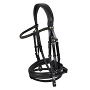 Testiera inglese in morbido cuoio di alta qualità, con fibbie in acciaio inox che garantiscono sicurezza, stabilità e resistenza nel tempo.