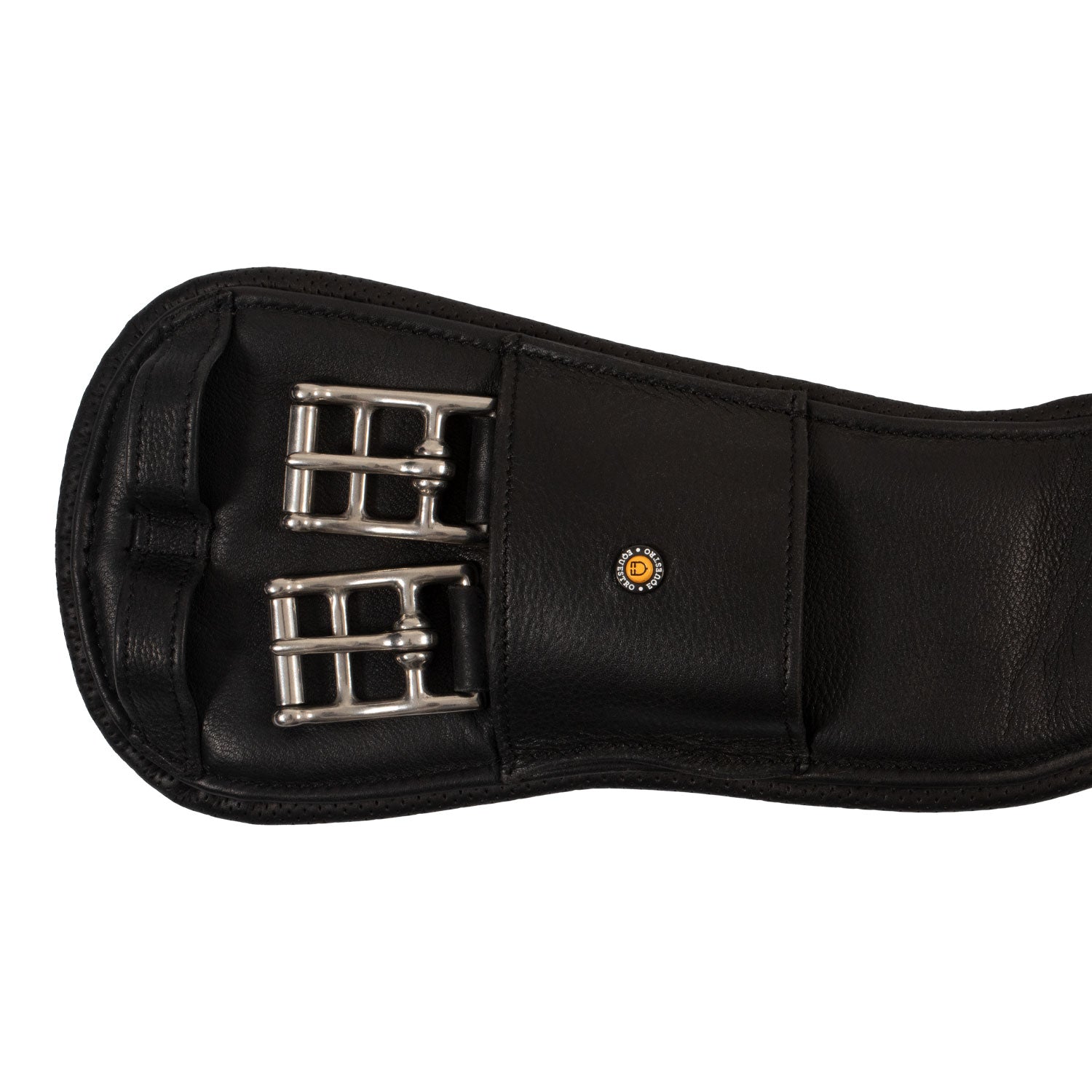 Sottopancia sagomato per sella inglese da dressage in cuoio resistente di alta qualità, dotato di fibbie in acciaio inox per maggiore efficacia anti corrosione.