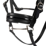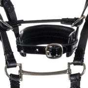 Intercambiabile e interattiva, è dotata di un frontalino e nasalina imbottiti in pelle nera e decorata con clincher argento sul frontalino per un tocco di glemour. Dalla forma elegante è inoltre impreziosita con logo Equestro su placchetta gialla.