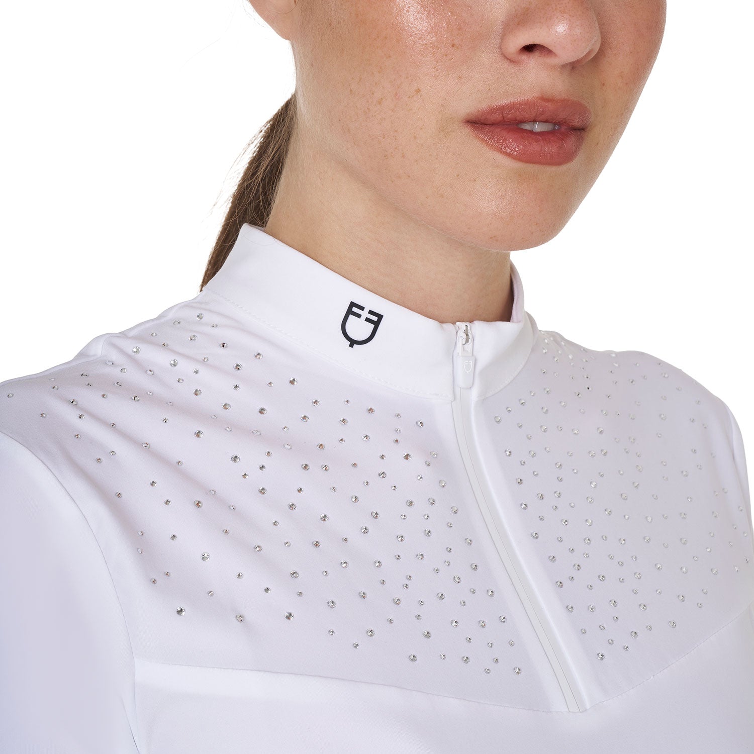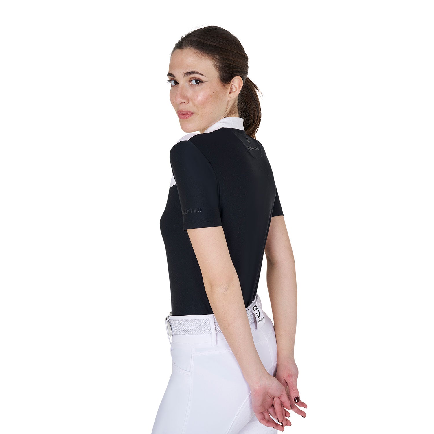 Polo donna da concorso a manica corta con strass frontali | Abbigliamento | Polo da Competizione | Equestro