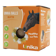 Unika Balls – Elyte: ideata per apportare sali minerali nella dieta del cavallo, la cui introduzione è necessaria durante tutto il corso dell’anno per rifornire le quote che il cavallo perde con la sudorazione.