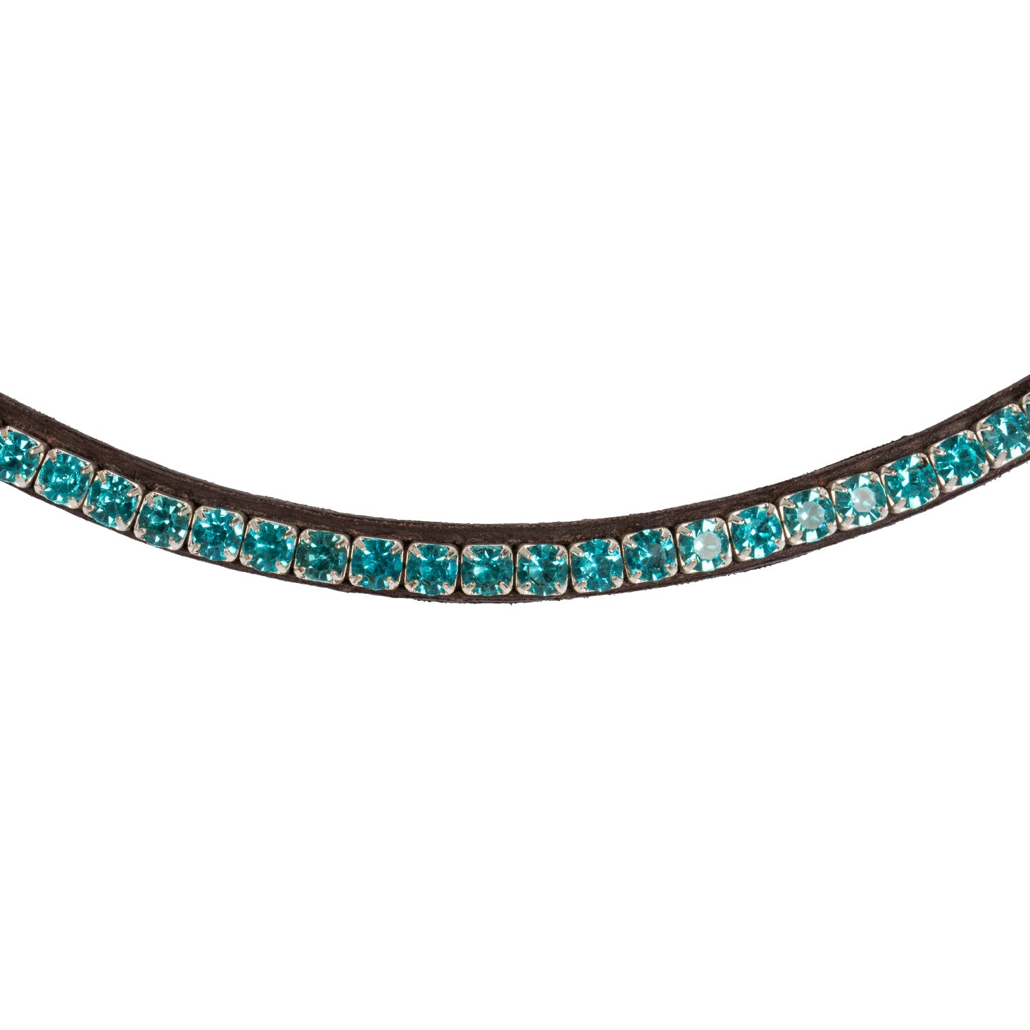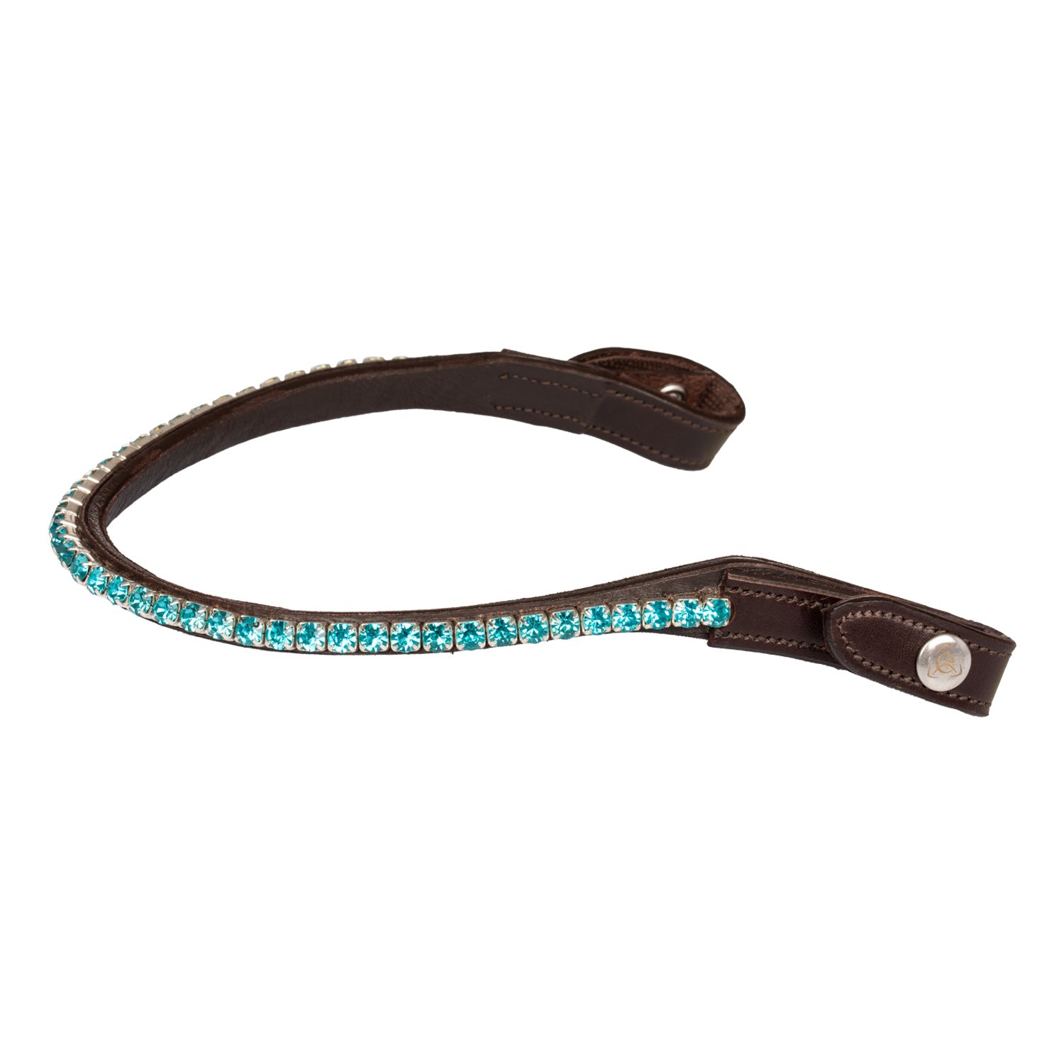 La sua bellezza è ulteriormente esaltata da una fila di cristalli rotondi incastonati, disponibili in una varietà di colori, che conferiscono brillantezza ed eleganza alla parte alta della testa del cavallo.
