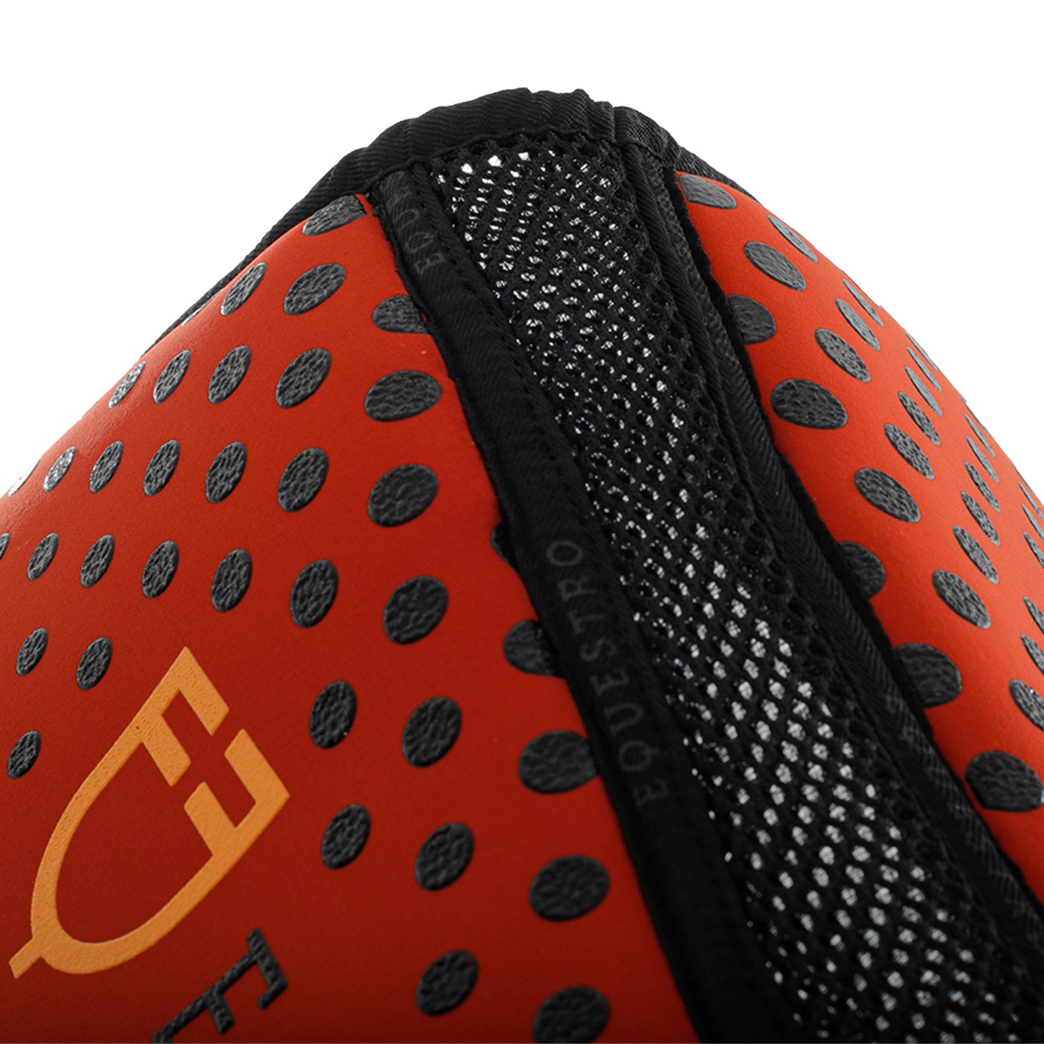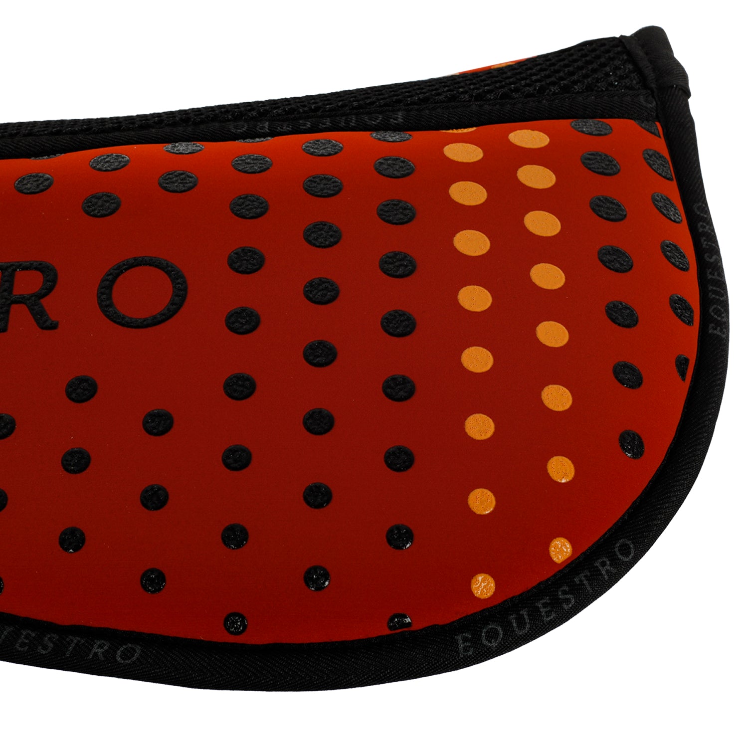 L'inserto centrale in tessuto traforato si adatta perfettamente alla conformazione del cavallo, eliminando la pressione sulla colonna vertebrale e migliorando l'aderenza alla sella.
