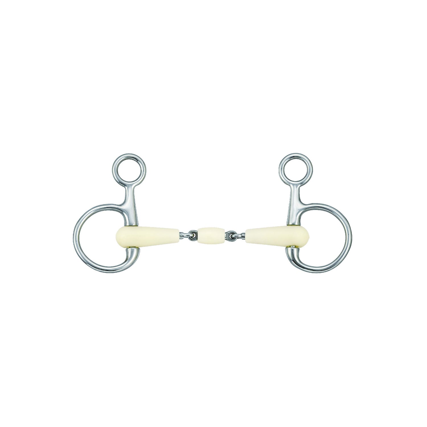 Filetto Baucher in acciaio inox con rivestimento in tre pezzi dotato di oliva centrale.