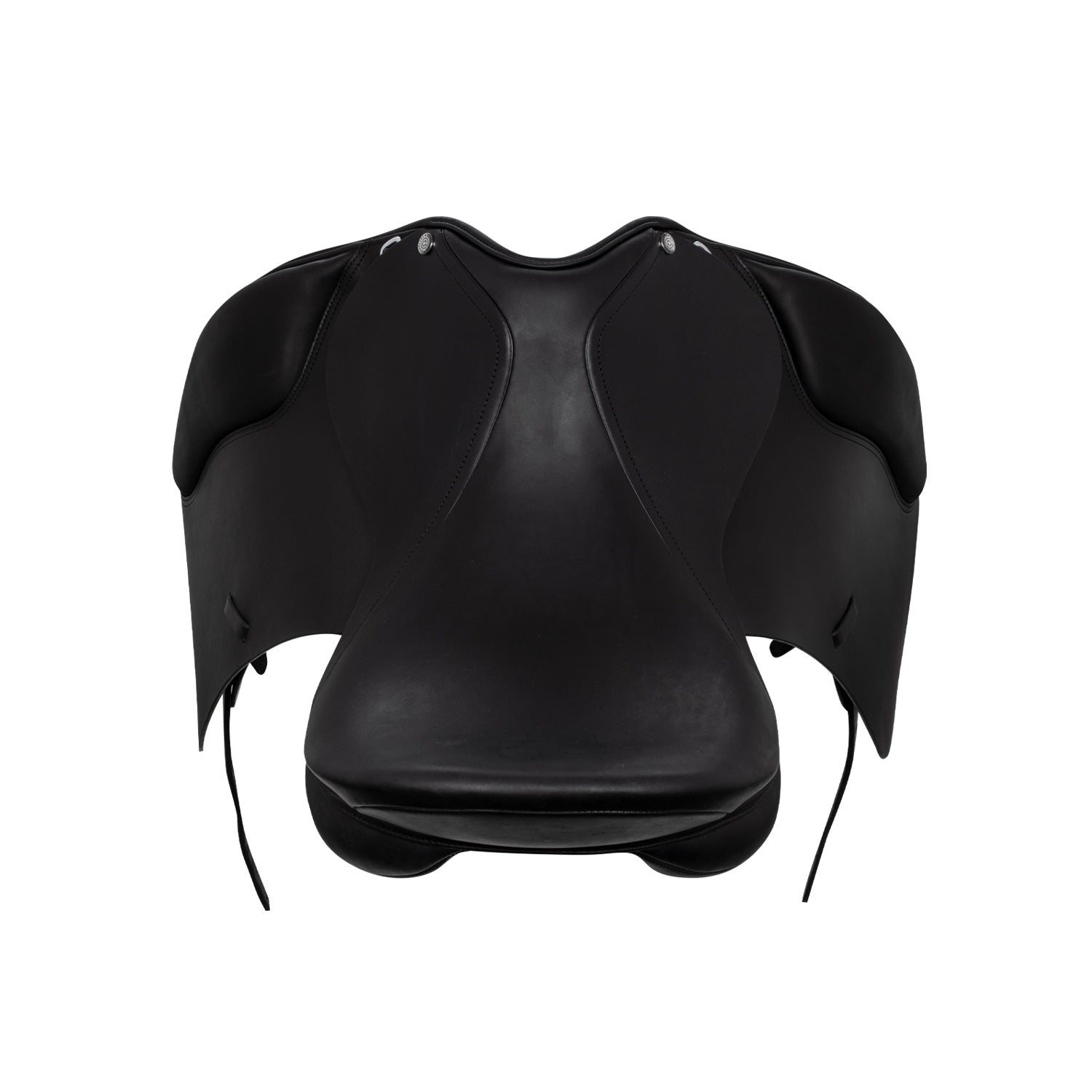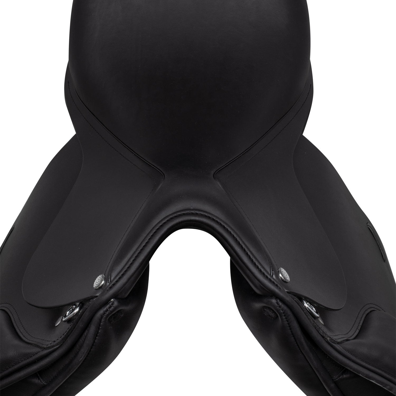 Sella da dressage realizzata con cuoio di alta qualità, progettata per garantire una stretta connessione con il cavallo senza limitarne i movimenti.