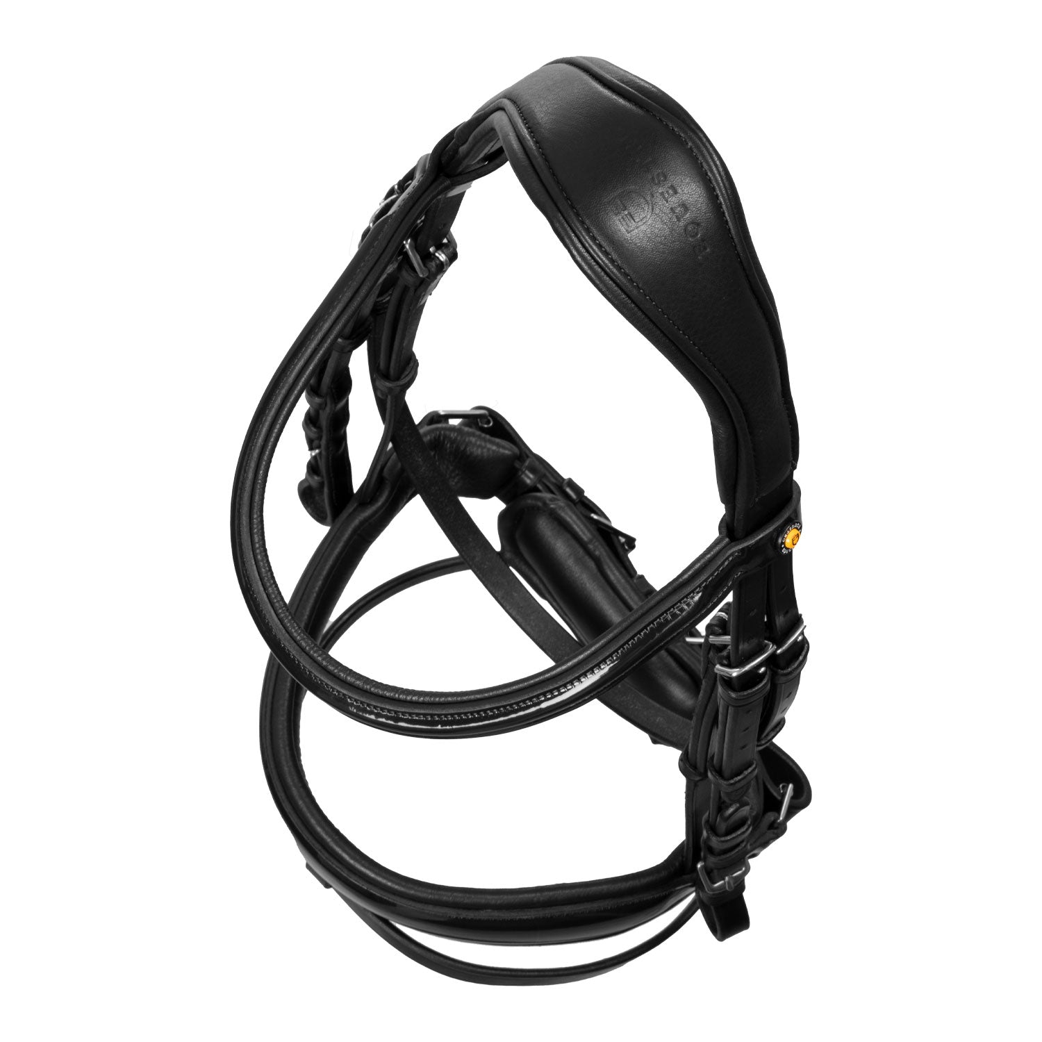 Il design anatomico del sovracapo distribuisce uniformemente la pressione sulla nuca, garantendo il massimo comfort al cavallo. Impreziosita da logo Equestro in giallo su i lati del frontalino.