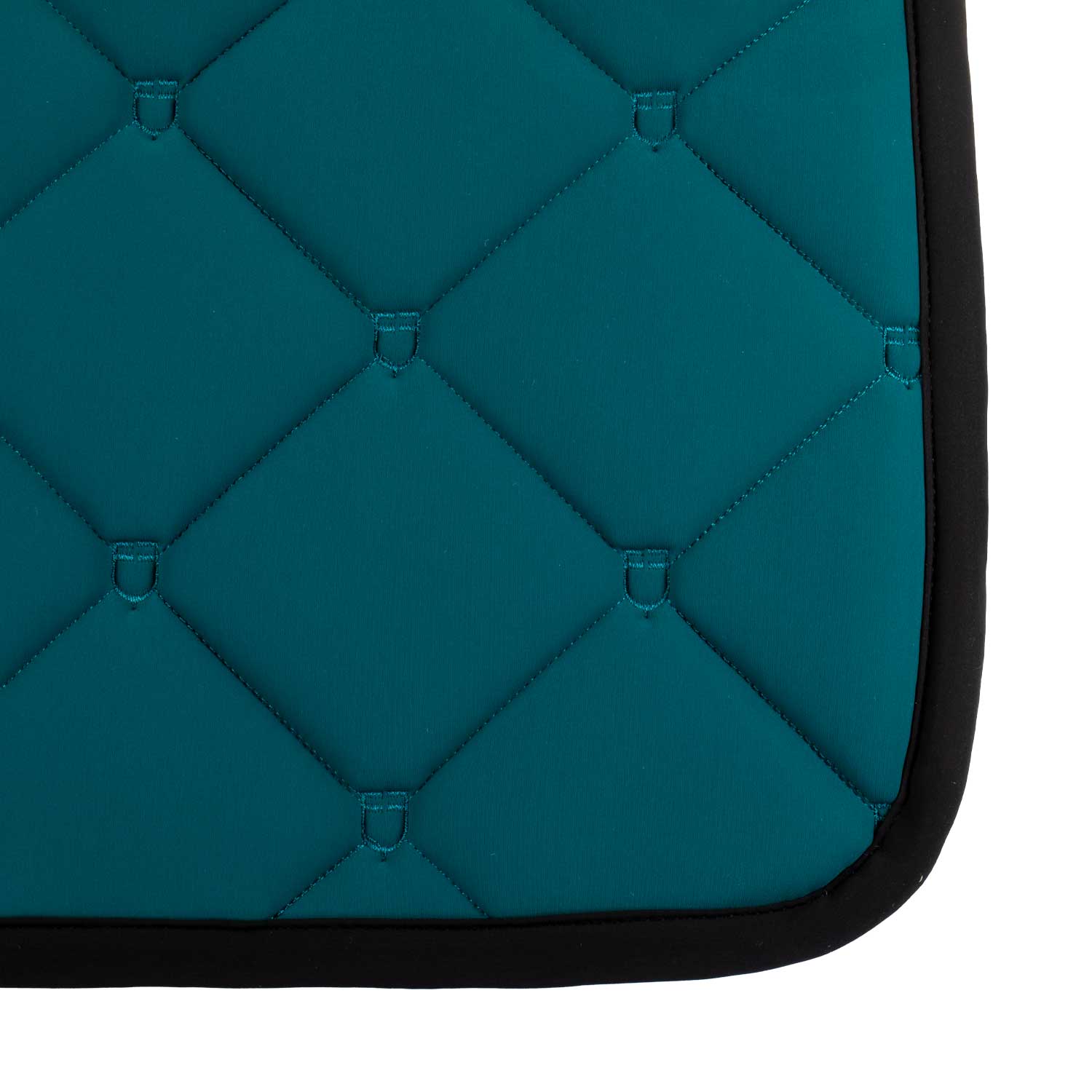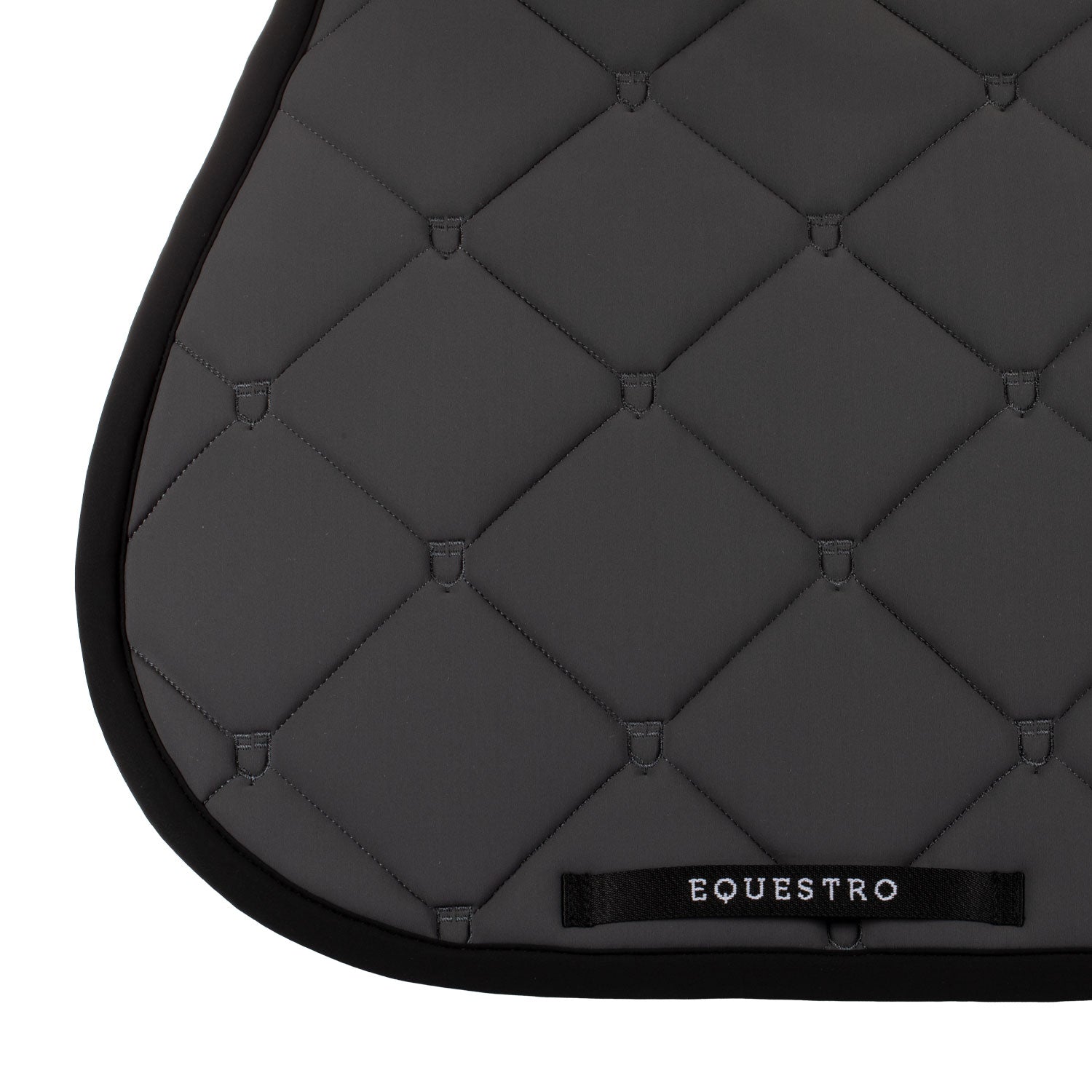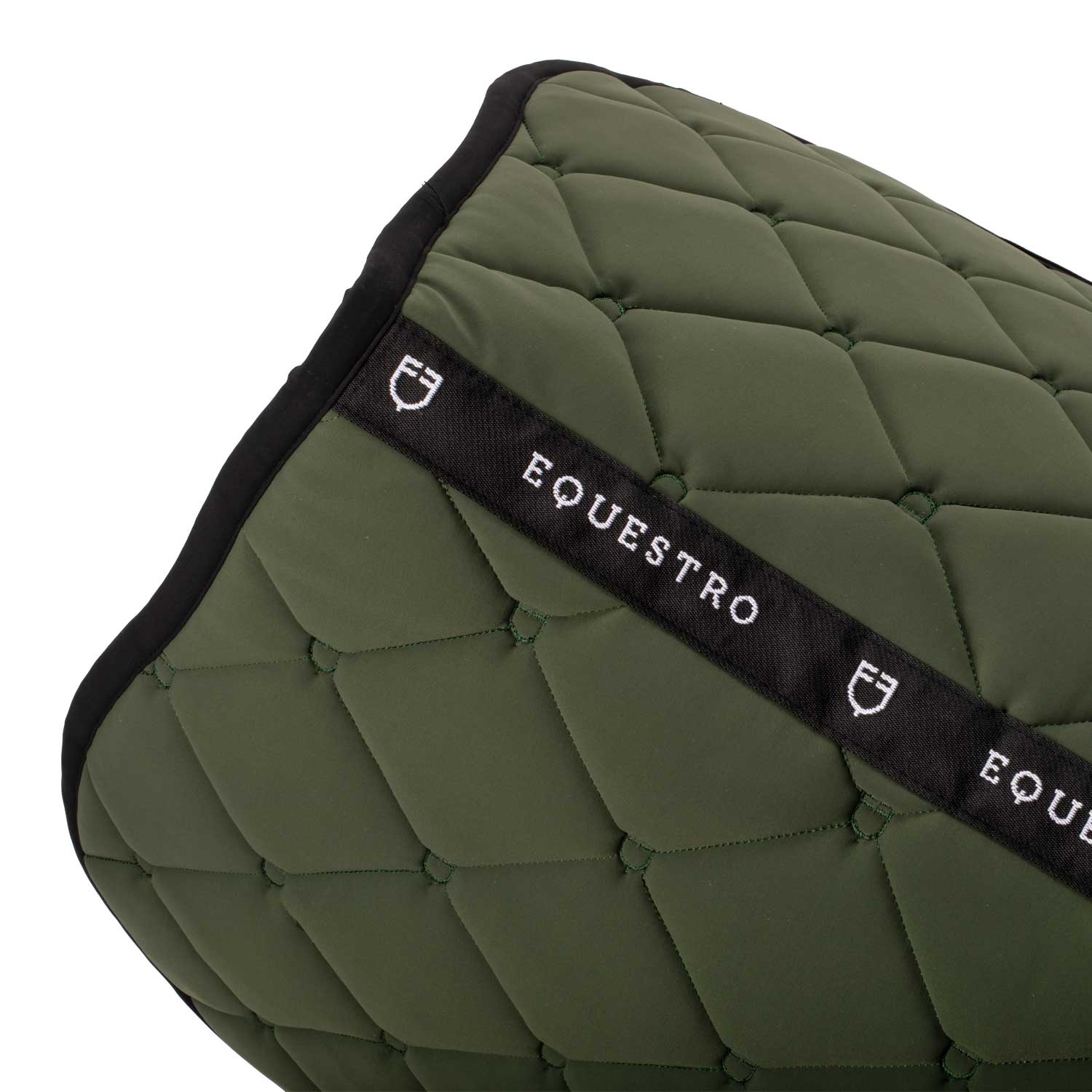 Sottosella da salto multilogo realizzato in tessuto tecnico con trapuntatura a rombi.