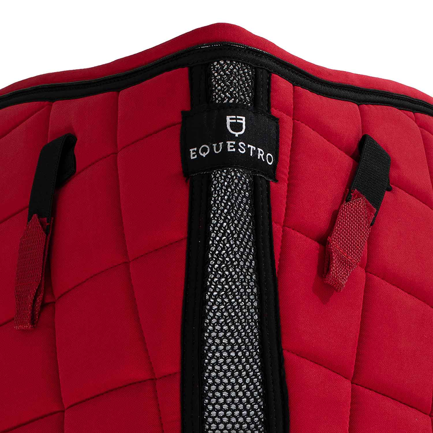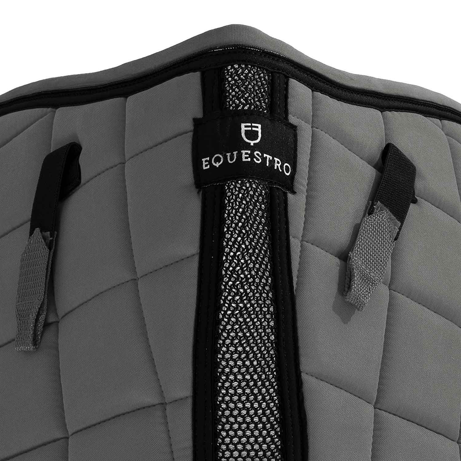 Il sottosella è decorato con motivo square, piping più trim nero e patch con logo e scritta Equestro sul garrese.