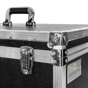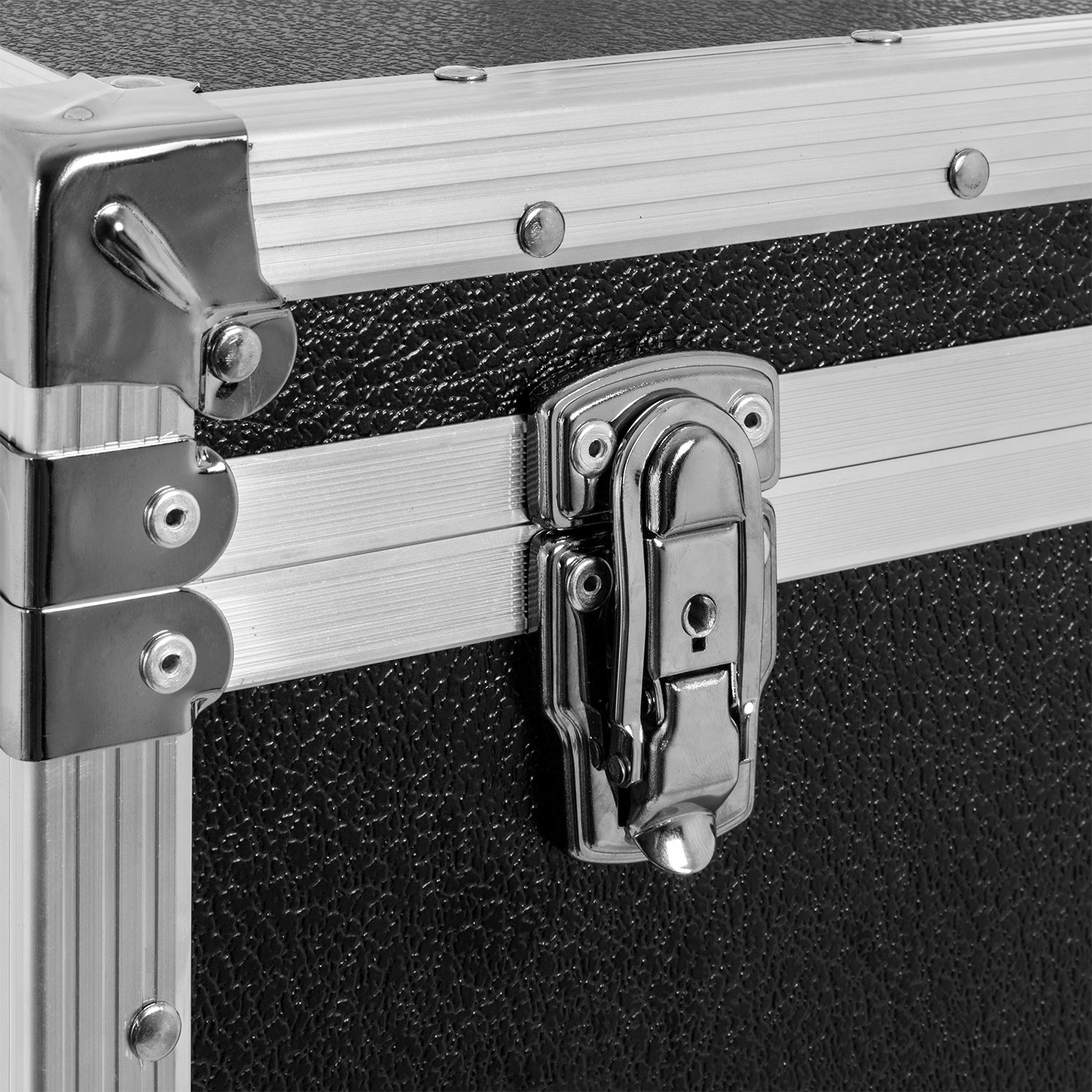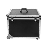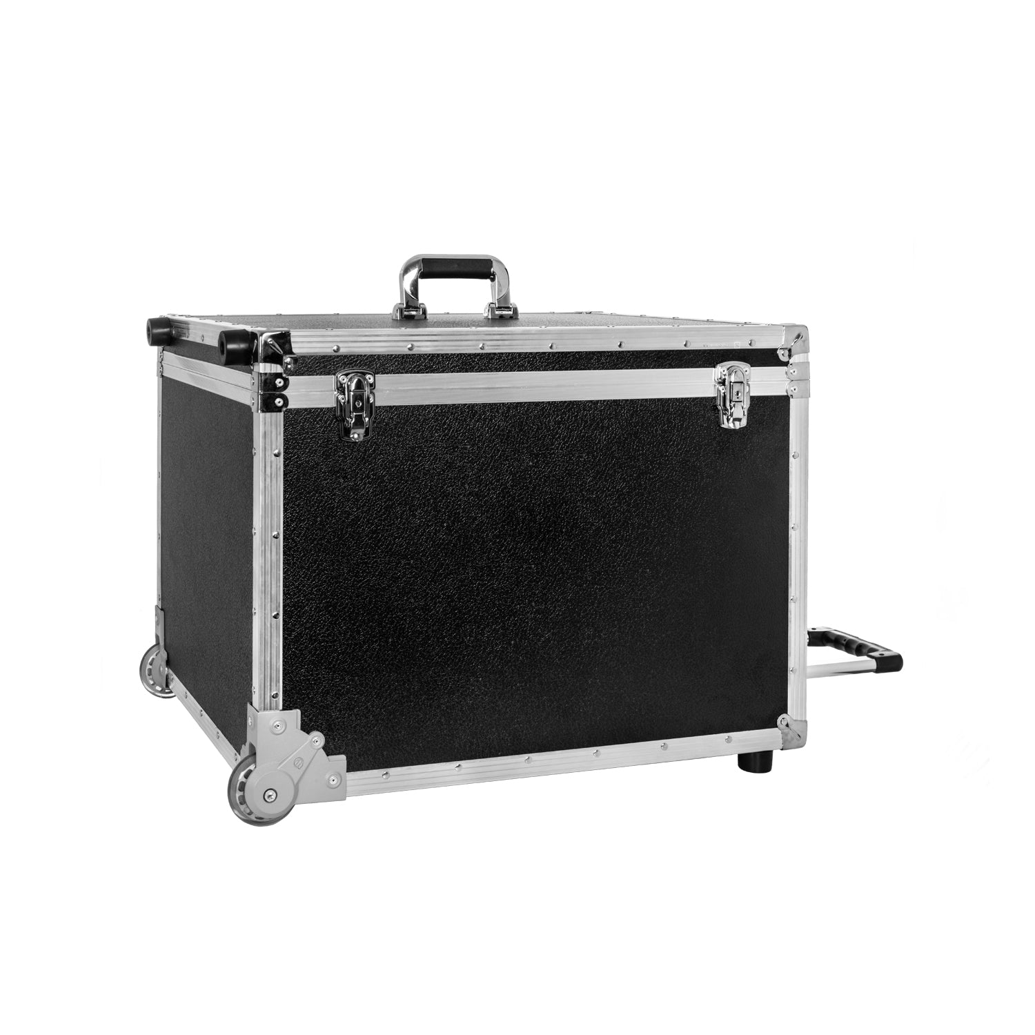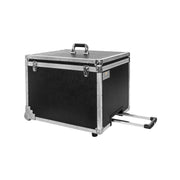 Beauty case trolley super capiente e resistente, realizzato in legno marino laminato e rinforzato da profili angolari in alluminio.