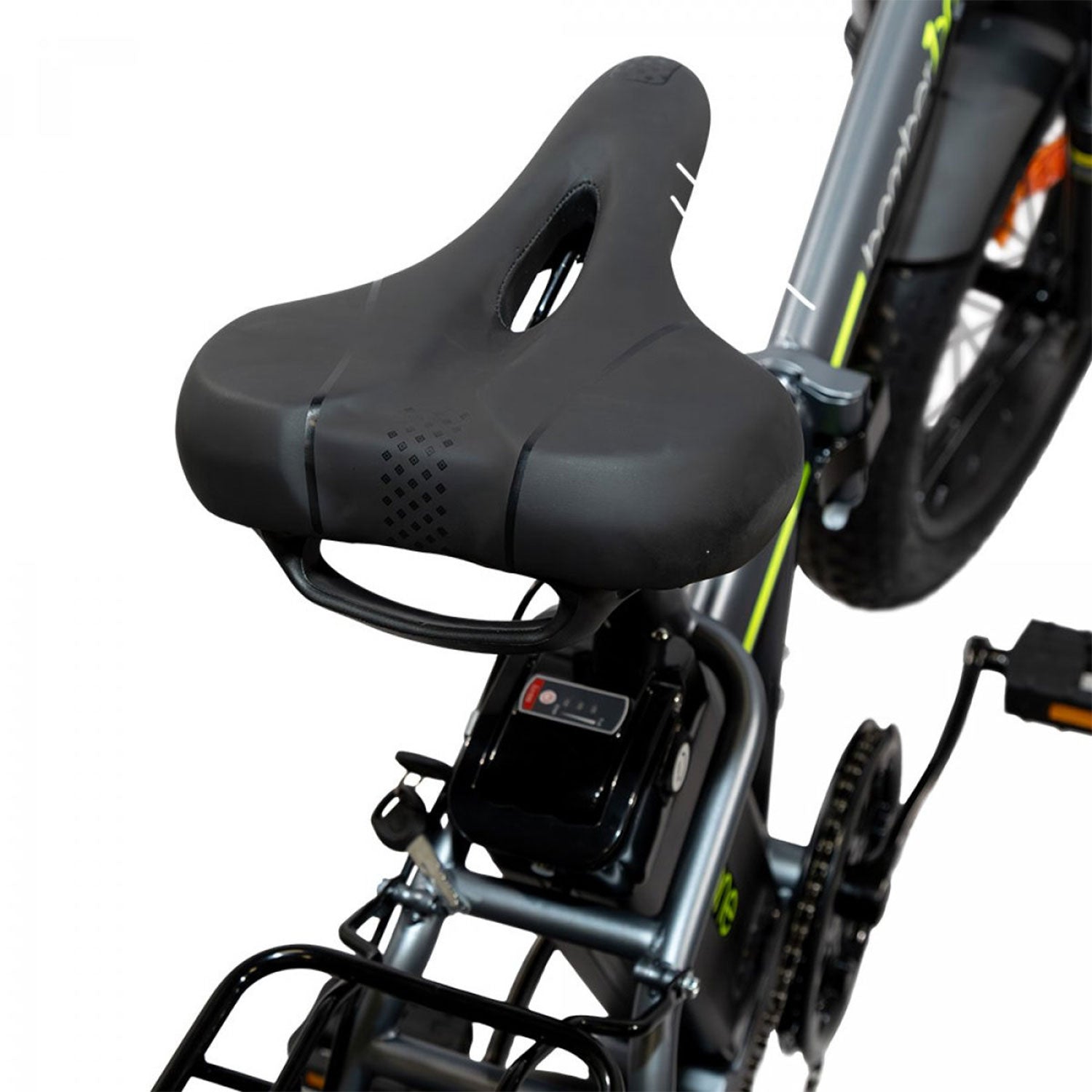 Questa e-bike pieghevole è dotata di un telaio in acciaio resistente da 17”, che ti permetterà di affrontare qualsiasi terreno con facilità. Grazie alle ruote da 20”, con battistrada da 4” e pneumatico tassellato FAT, potrai sfrecciare su sabbia, neve o terreni accidentati senza problemi, mentre i freni a disco Logan 21 - ST garantiscono una frenata sicura e affidabile in qualsiasi condizione e la forcella ammortizzata in acciaio consente un livello di comfort ottimale. Con il cambio Shimano RS36 a 6 velocità e il deragliatore Shimano TZ-500, potrai goderti una pedalata fluida e regolare per affrontare salite ripide e scendere a tutta rapidità con estrema precisione. Il potente motore da 250W, abbinato alla batteria da 36V 10Ah, ti forniranno un’ampia autonomia di circa 40 km*, mentre sul display LED potrai facilmente tenere sotto controllo velocità, distanza percorsa e molto altro ancora. Per garantire la tua sicurezza, abbiamo incluso una luce anteriore LED alimentata dalla batteria e una luce posteriore montata sul portapacchi posteriore realizzato in robusto acciaio. Infine, per rendere la bicicletta elettrica più pratica, con i pedali pieghevoli potrai riporla facilmente anche negli spazi più stretti.