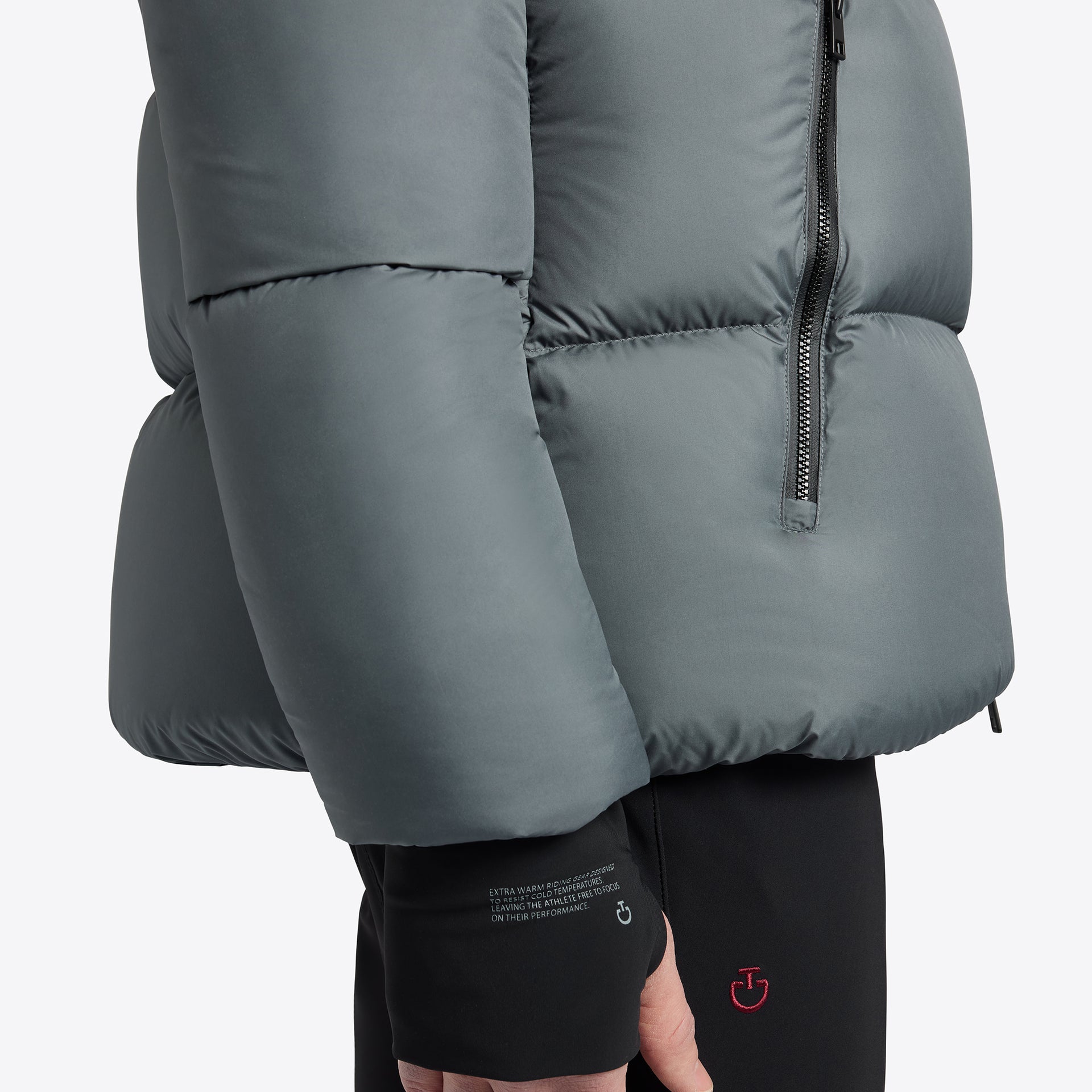 Il parka Cavalleria Toscana da uomo con cappuccio e imbottitura in piuma è un capo essenziale per le amazzoni che cercano comfort e stile sia durante le competizioni che nei momenti di pausa o nel daily lifestyle. Realizzato in nylon tecnico di alta qualità, questo parka offre resistenza e leggerezza, mantenendo il calore grazie all'imbottitura in piuma d'oca. Il design trapuntato garantisce una distribuzione uniforme del calore, ideale per le giornate fredde. Il cappuccio, oltre a proteggere dal vento e dalla pioggia, aggiunge un tocco di eleganza al capo. Le cerniere centrali e laterali rivestite in plastica con denti stampati e i tiretti delle cerniere neri opachi donano un aspetto moderno e funzionale. La giacca è dotata di una tasca interna in jersey bianco con stampa in silicone nero, perfetta per riporre piccoli oggetti in sicurezza. L'interno delle tasche è foderato in pile leggero o jersey con superficie leggermente floccata per mantenere il calore. Il logo CT in silicone, posizionato sul braccio destro, sottolinea l'attenzione ai dettagli e l'impegno per la qualità. Le mani rimarranno calde grazie alla fodera speciale delle tasche, mentre il parka garantirà sempre un aspetto impeccabile e un comfort superiore. Questo parka è ideale non solo per le competizioni e gli allenamenti in condizioni climatiche avverse, ma anche per i momenti di pausa e il daily lifestyle, combinando perfettamente funzionalità e stile. Con un design ergonomico che segue i movimenti del corpo, assicura una vestibilità aderente e una libertà di movimento senza pari, fondamentale per affrontare ogni sfida con sicurezza. Un capo indispensabile per le amazzoni moderne che esigono il massimo in termini di qualità, prestazioni e stile.