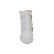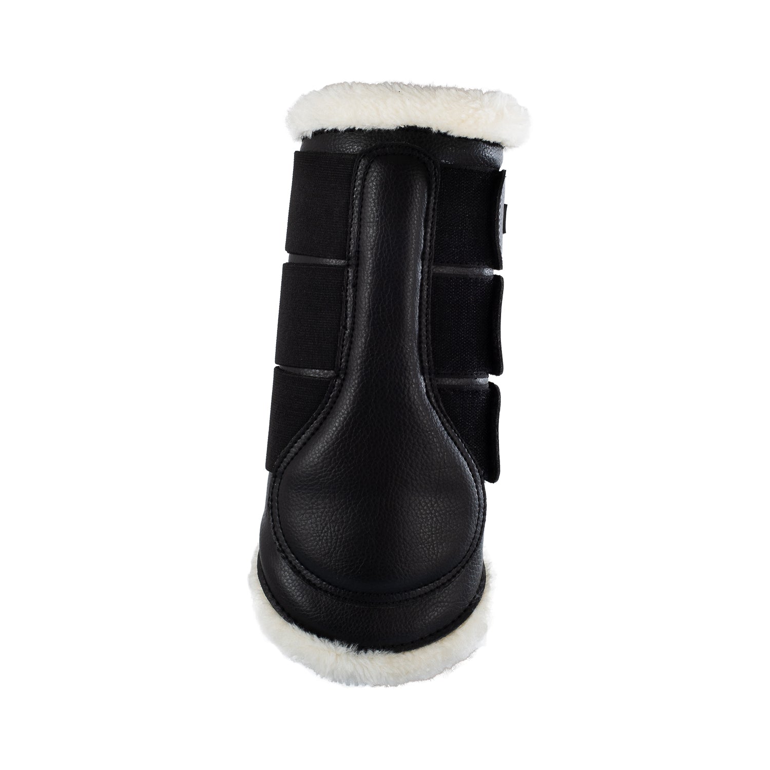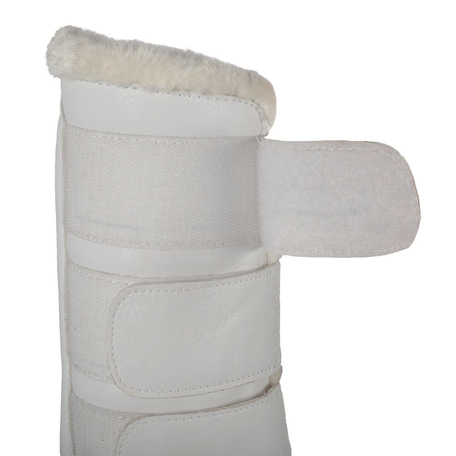 Le stinchiere posteriori in ecopelle e montone sintetico sono caratterizzate da una chiusura con tripla fascia a strappo che impedisce alla protezione di scivolare, ma allo stesso tempo garantisce la massima libertà di movimento al cavallo.