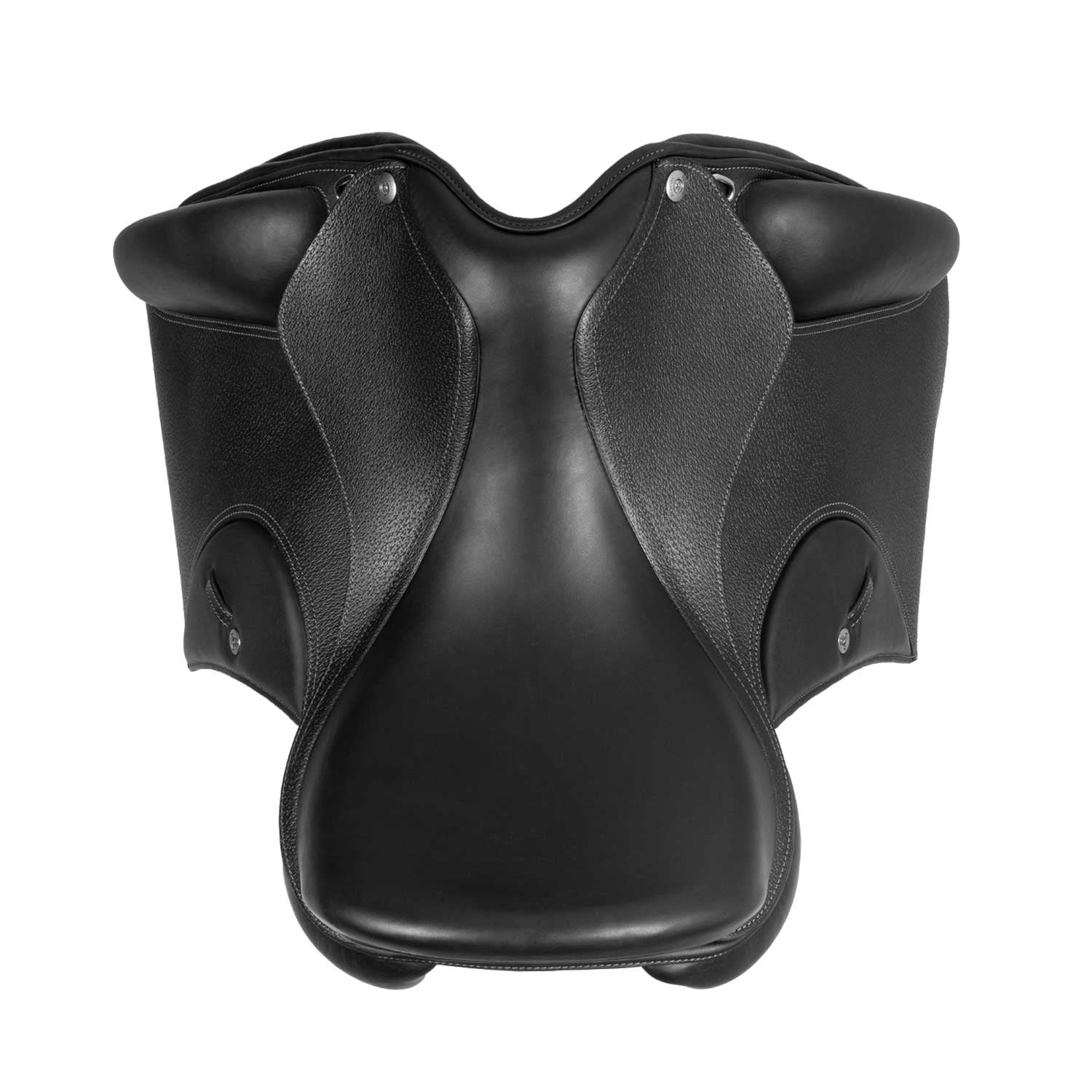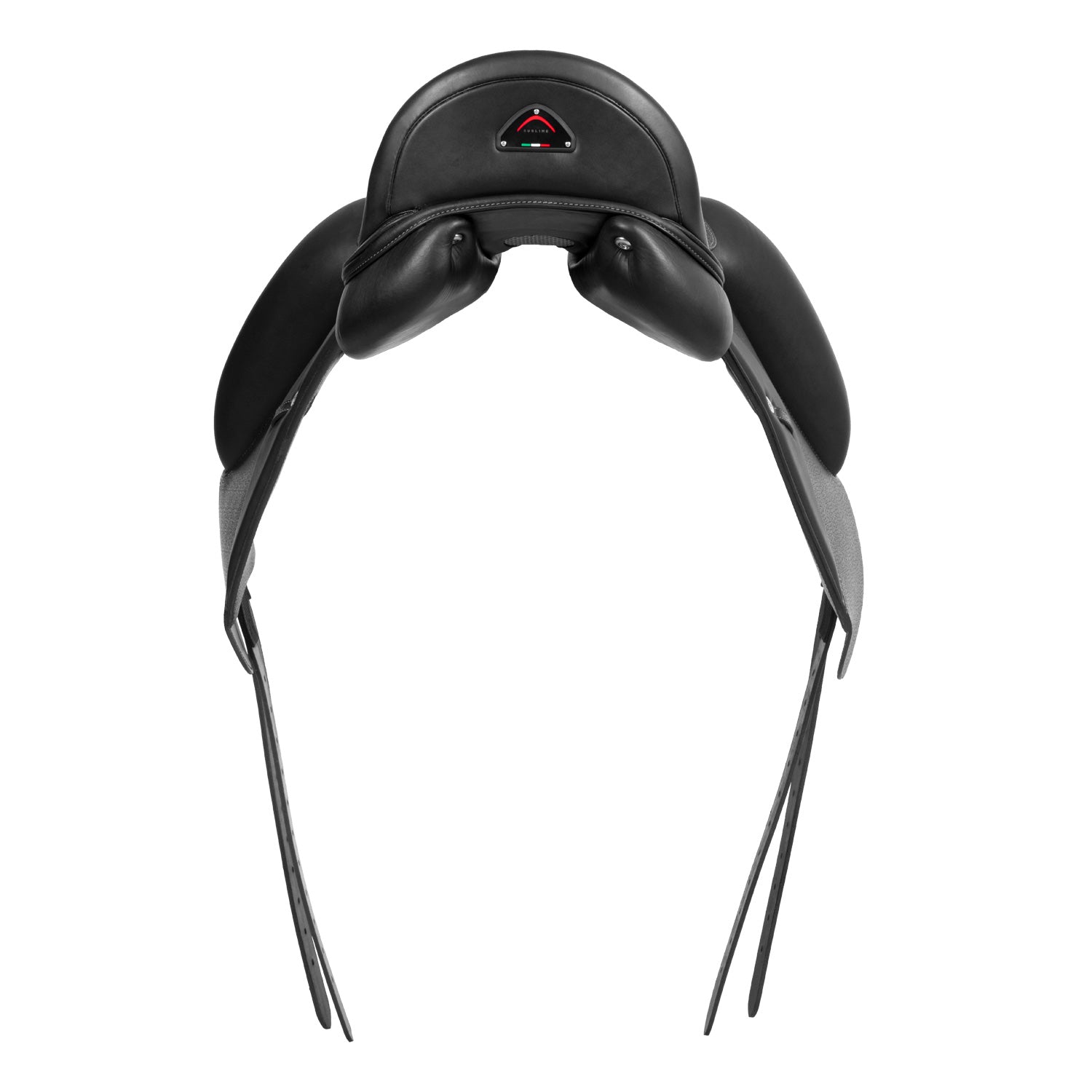 L'elemento rivoluzionario di questa sella è l'arcione in Kevlar-carbonio, una combinazione di materiali avanzati che offre il massimo comfort sia per il cavaliere che per il cavallo. L'arcione presenta una parte centrale elastica, con un cuscinetto in gel che assicura il comfort del cavaliere, e una zona perimetrale progettata per conferire una rigidità progressiva, permettendo all'arcione di seguire naturalmente i movimenti del cavallo. Questa combinazione di kevlar e carbonio rende l'arcione praticamente indeformabile nel tempo, garantendo una resistenza meccanica straordinaria e leggerezza.