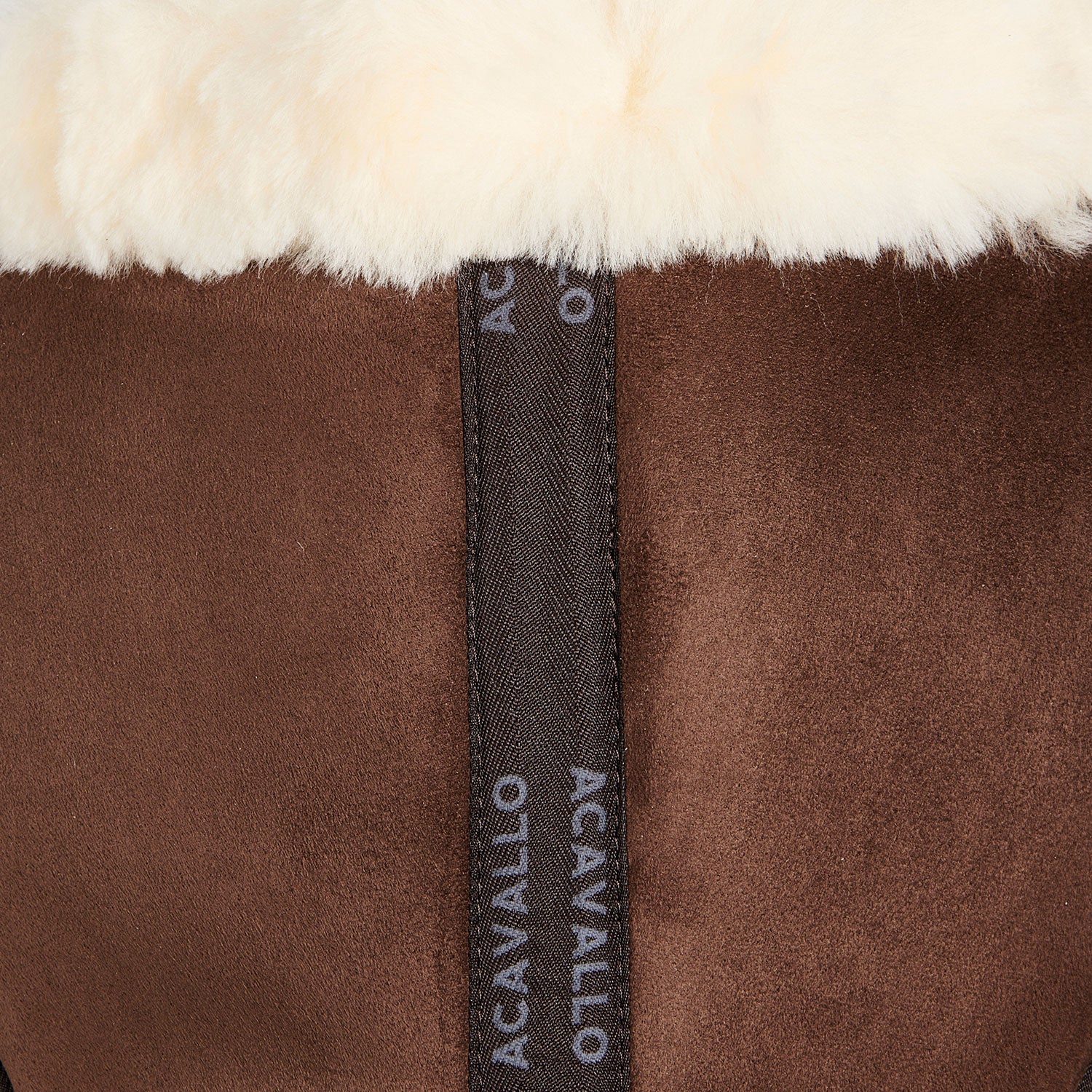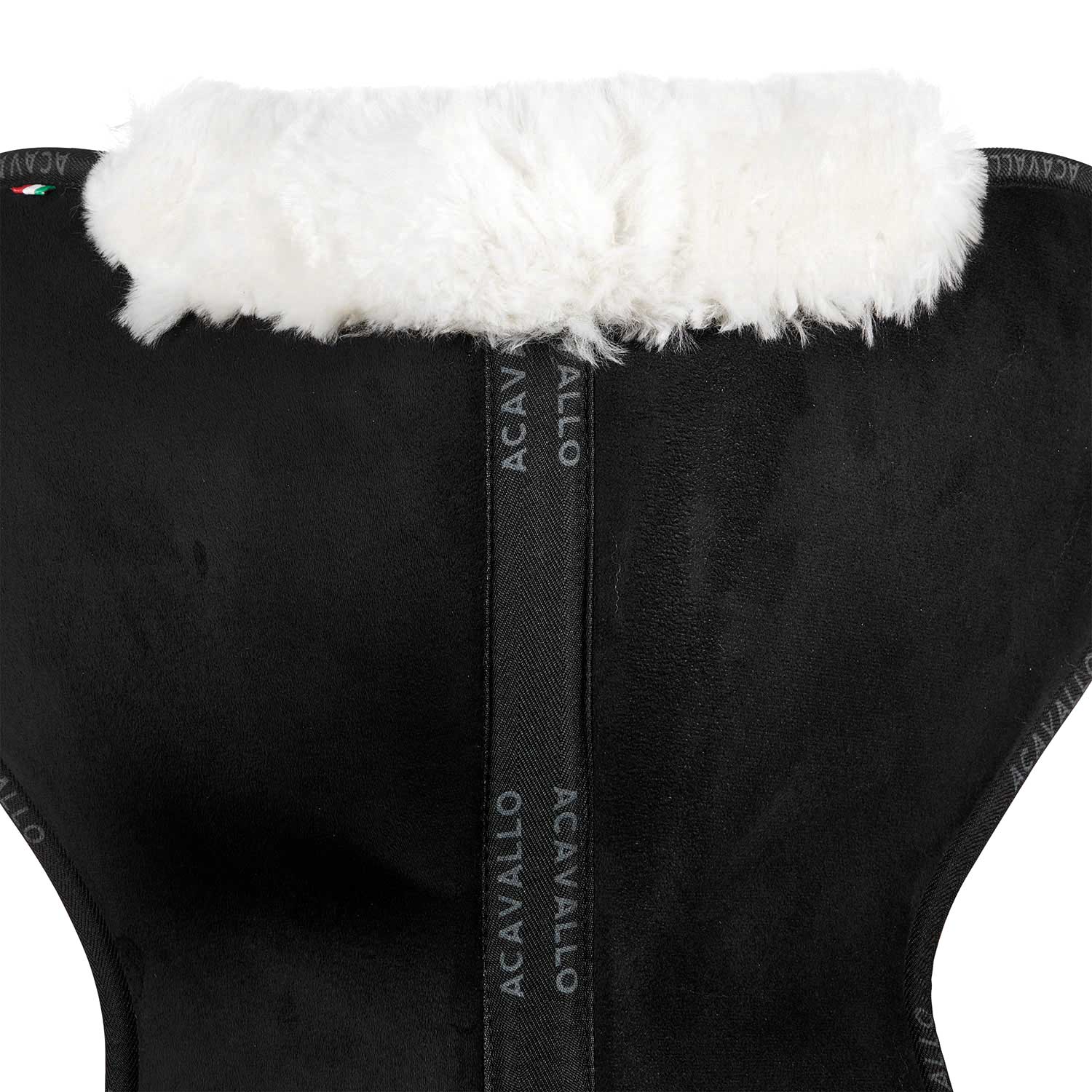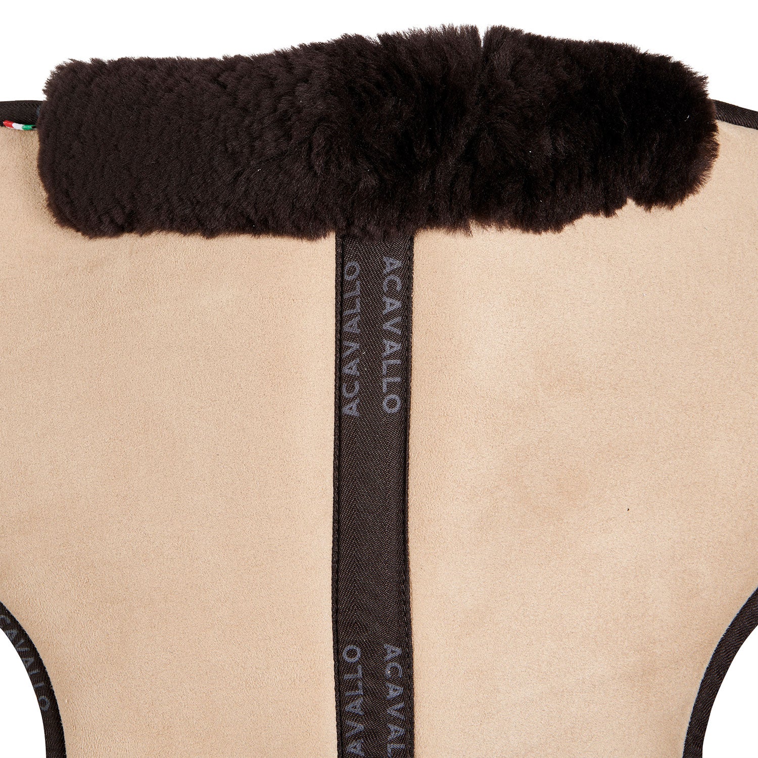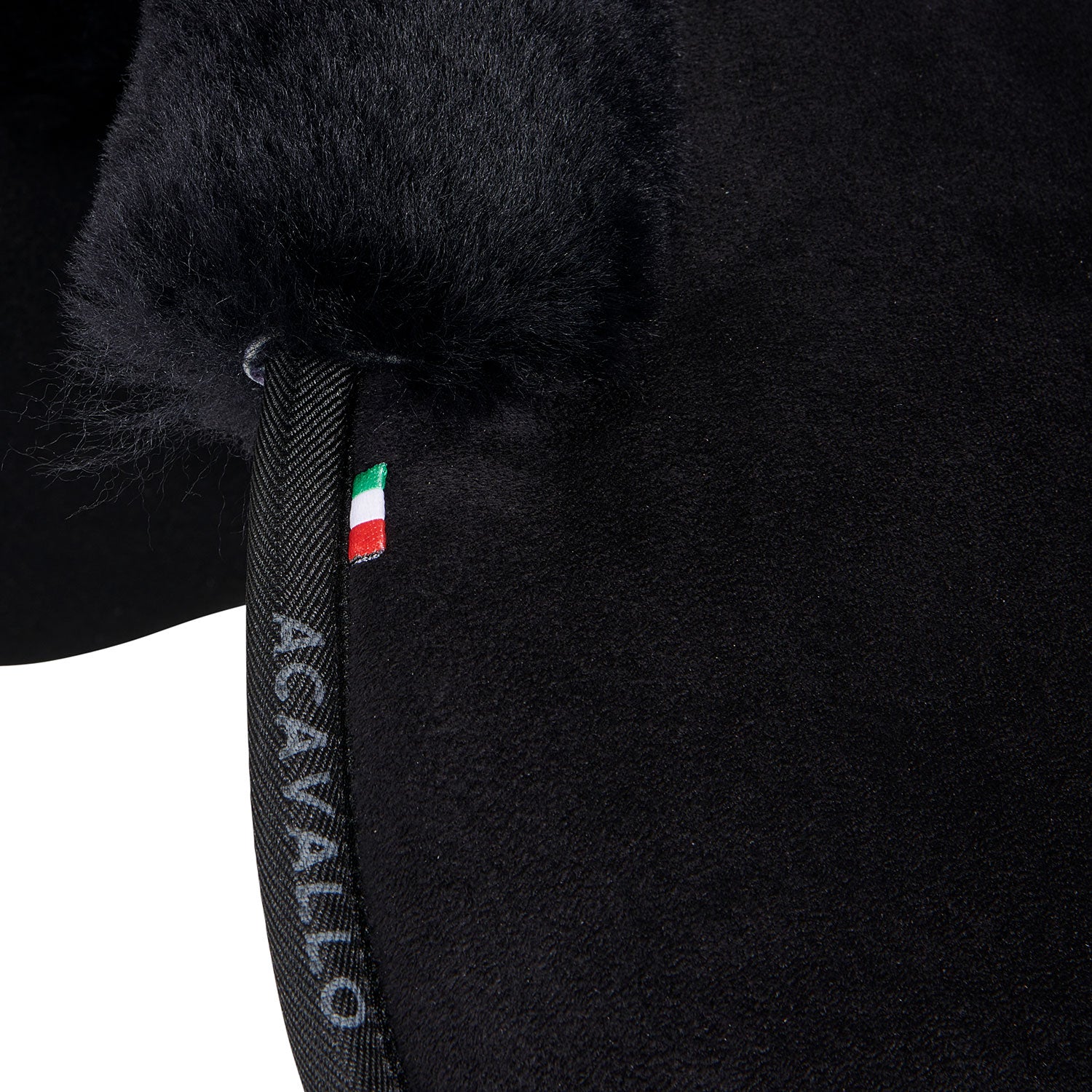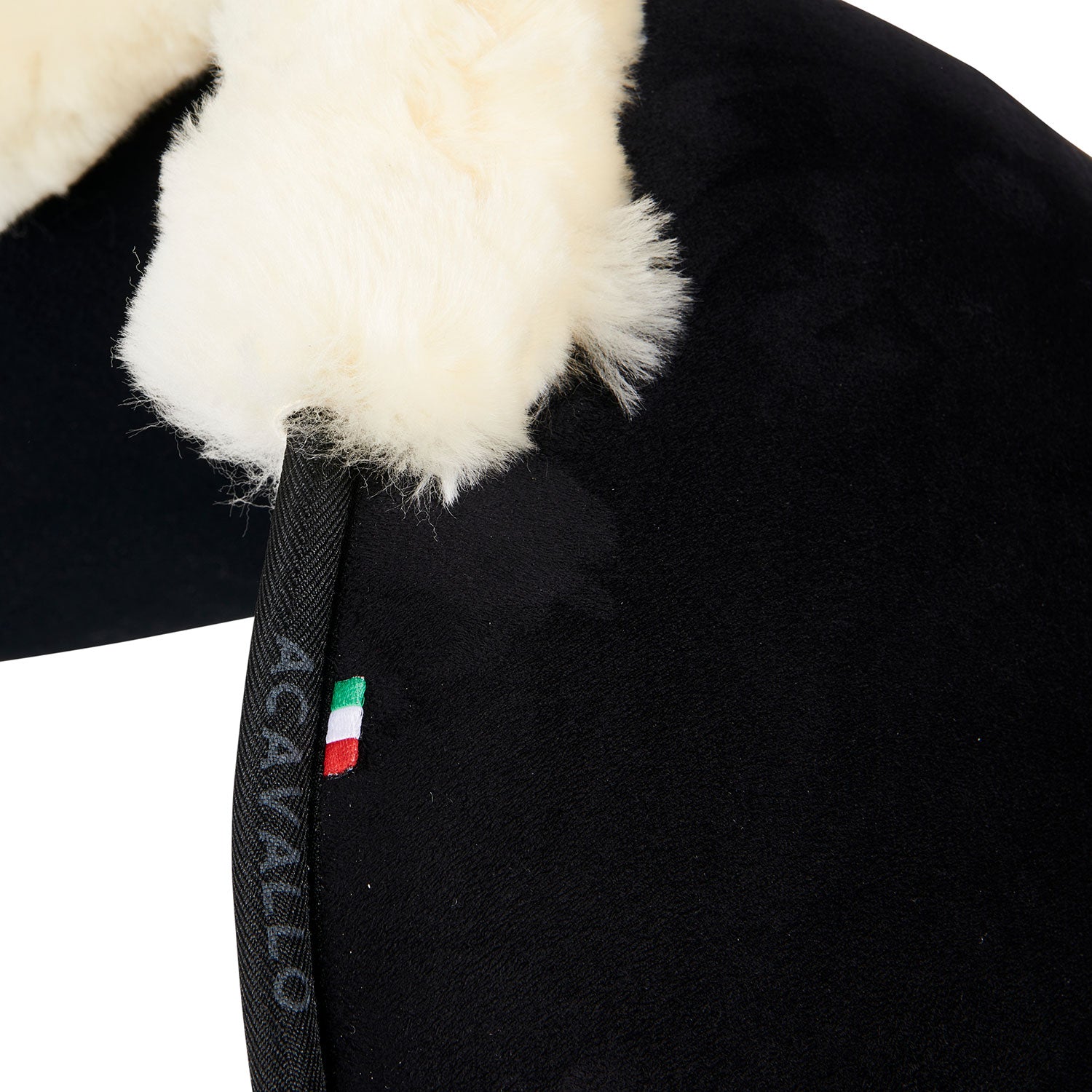 Il rivestimento in montone Acavallo®, un materiale naturale delicato e ipoallergenico, protegge la pelle del cavallo da sfregamenti, abrasioni e vesciche, garantendo il massimo comfort durante le sessioni di equitazione.