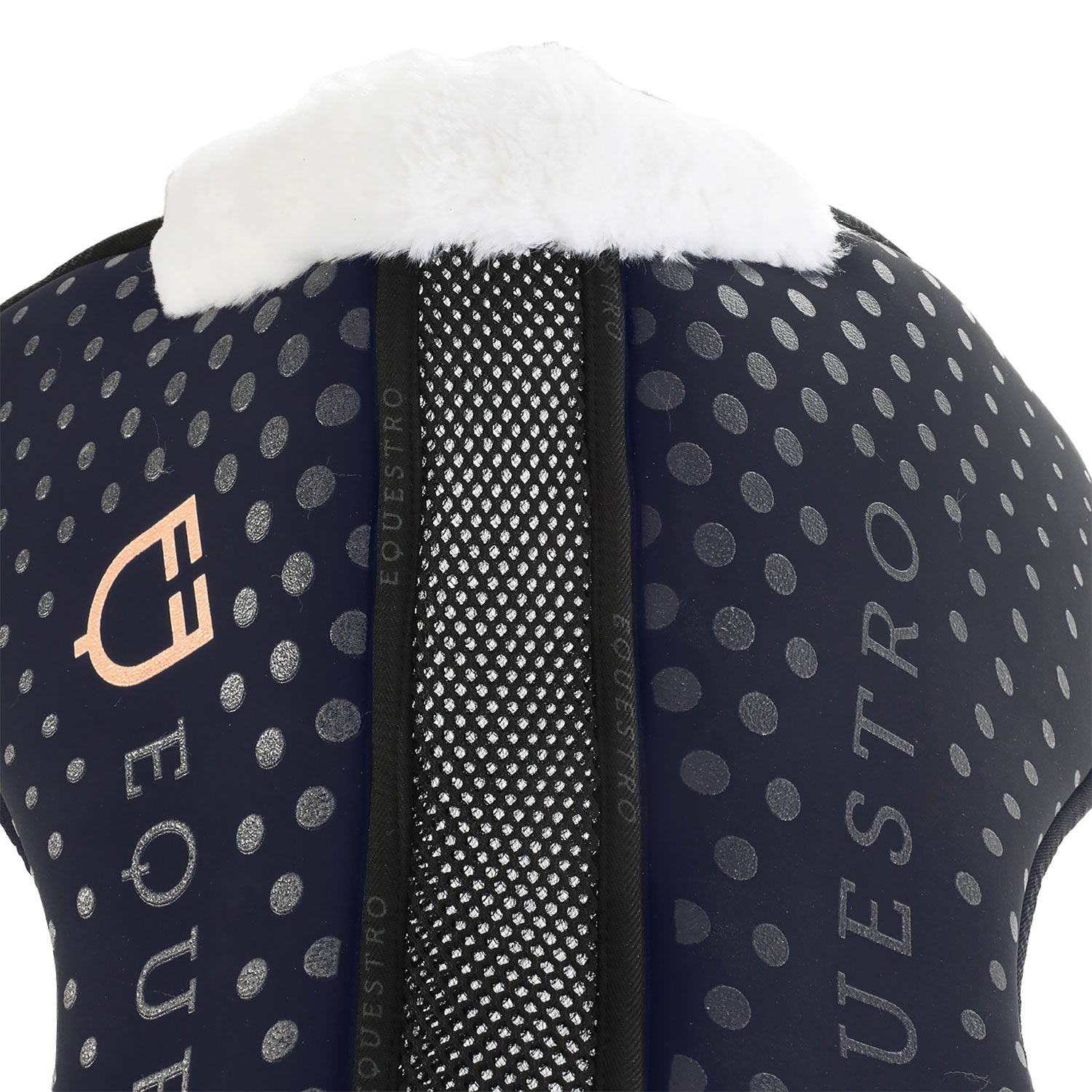 Compensatore ecowool con grip siliconato e tessuto traforato per rispondere all'esigenza del cavaliere di avere maggiore stabilità in sella riducendo al minimo gli urti.
