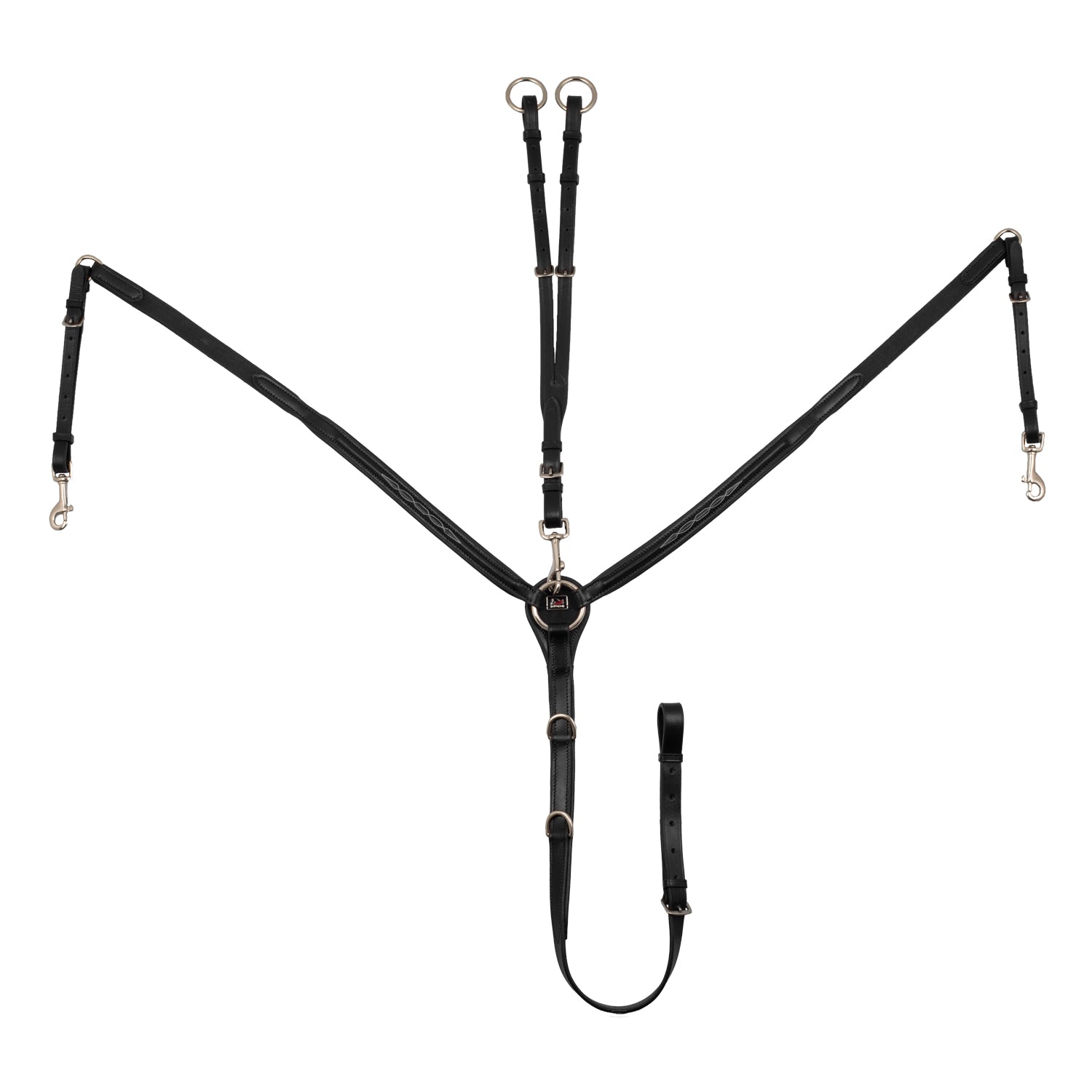 Il pettorale è completamente regolabile per garantire una perfetta adattabilità a qualsiasi tipo di cavallo, assicurando il massimo comfort e la massima efficienza.