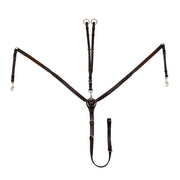 Pettorale con forchetta, anatomico ed elegante, realizzato in pregiato cuoio e fibbie cromate di alta qualità, rappresenta un prodotto di eccellenza che coniuga in modo perfetto stabilità, resistenza e sicurezza.