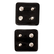 Porta numeri da gara realizzato in cuoio lucido di alta qualità e plastica trasparente, decorato con raffinati cristalli incastonati. Pensato per portare numeri fino a tre cifre.