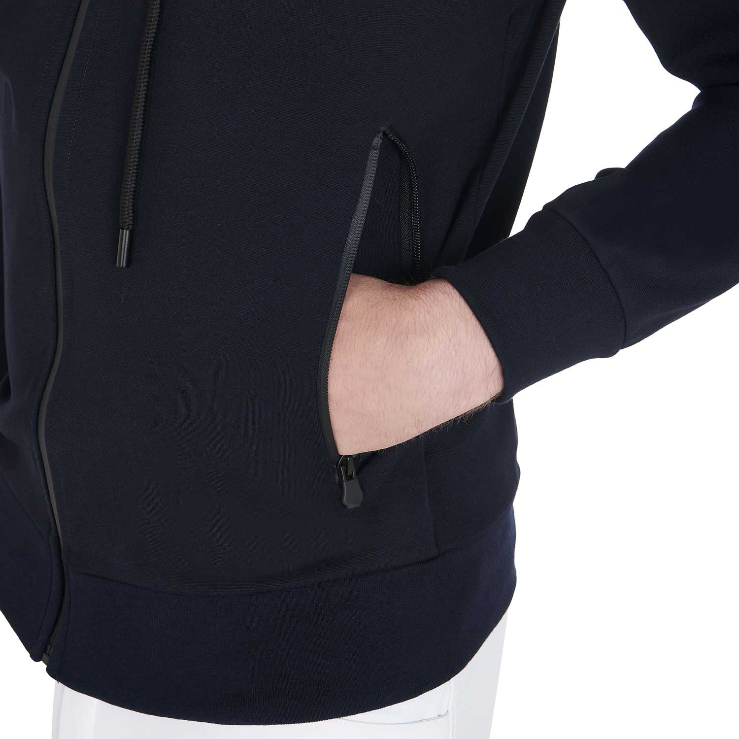 Felpa uomo full zip con cappuccio in tessuto tecnico interlock per garantire comfort, traspirabilità e piena libertà nei movimenti.