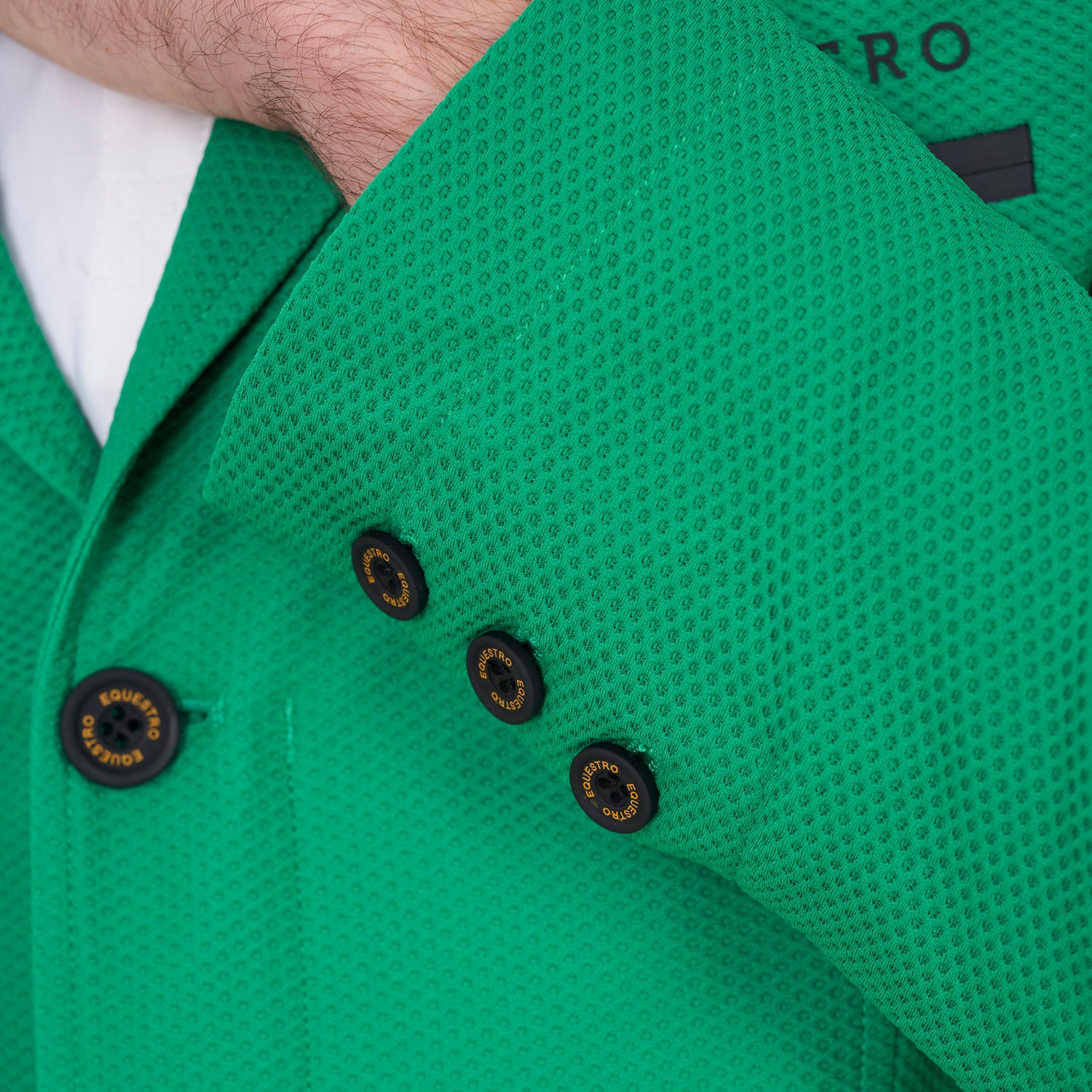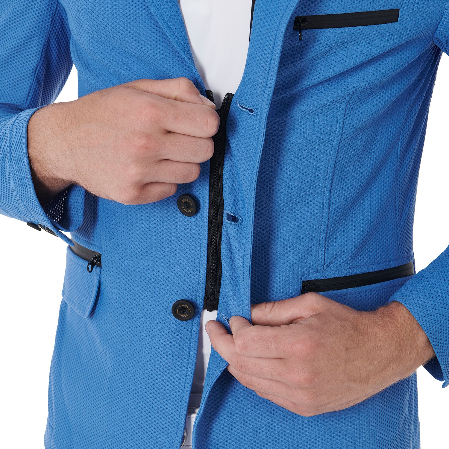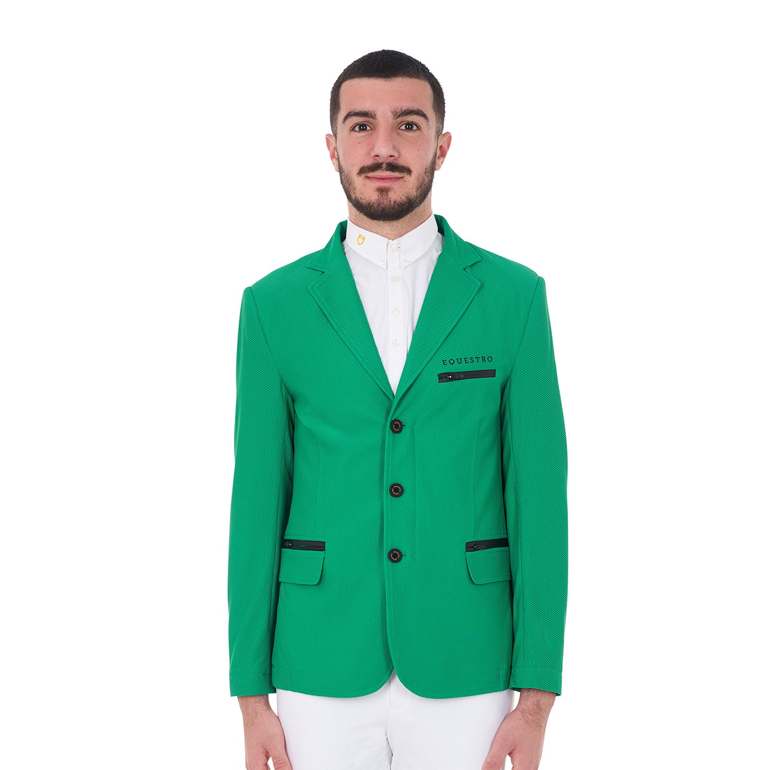 La giacca è impreziosita da tasche a soffietto con zip spalmata e tasca lato cuore con logo Equestro stampato tono su tono.
