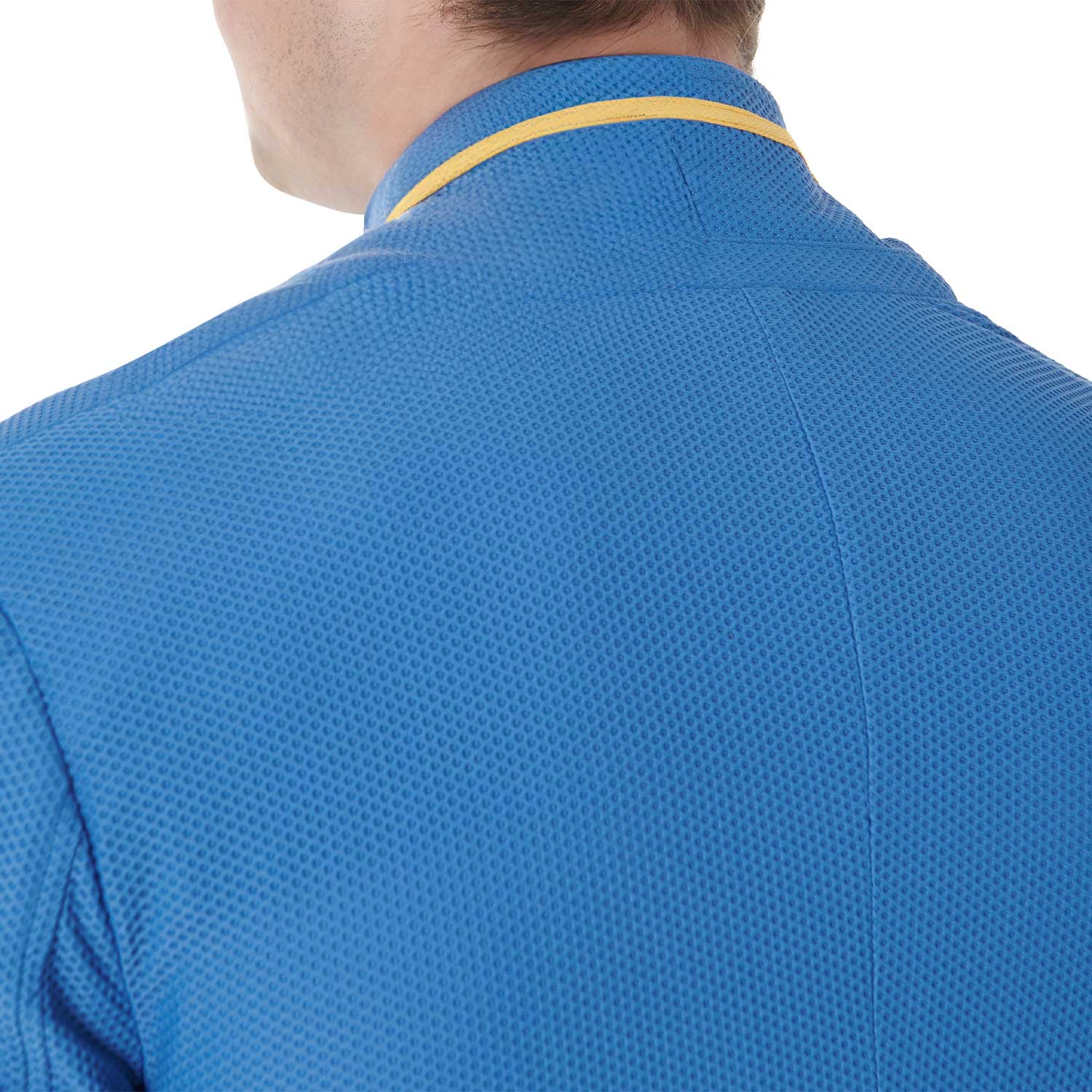 Giacca uomo da concorso, tre bottoni, realizzata in tessuto traforato.