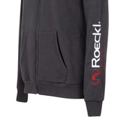 Felpa da uomo con cappuccio con cordini, full zip e tasche laterali. La zip frontale, oltre a essere una caratteristica funzionale che consente di regolare la temperatura, aggiunge un elemento di modernità e versatilità al design.