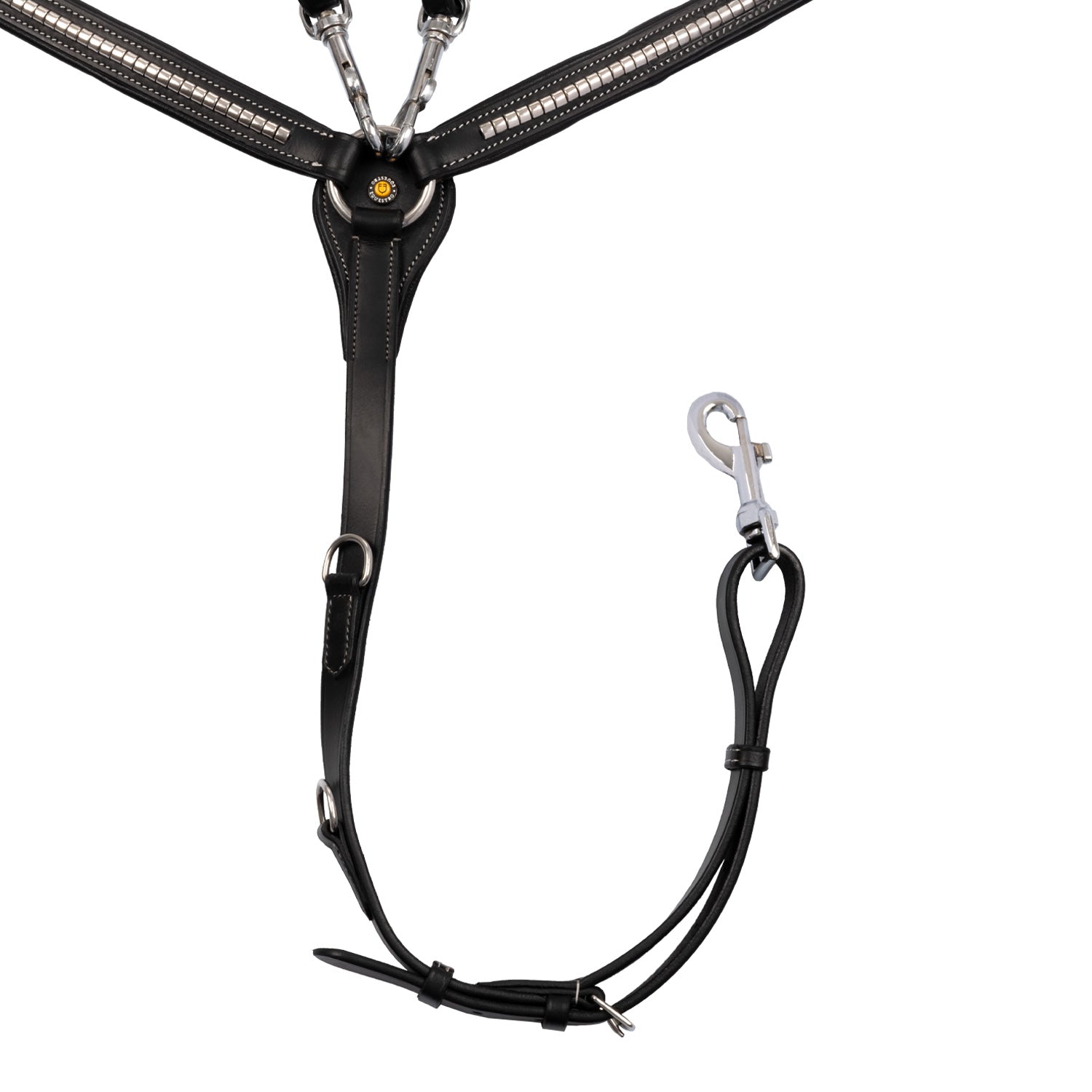 Ogni cinghia o fibbia è regolabile affinché il pettorale si possa adattare perfettamente a ogni tipo di cavallo.