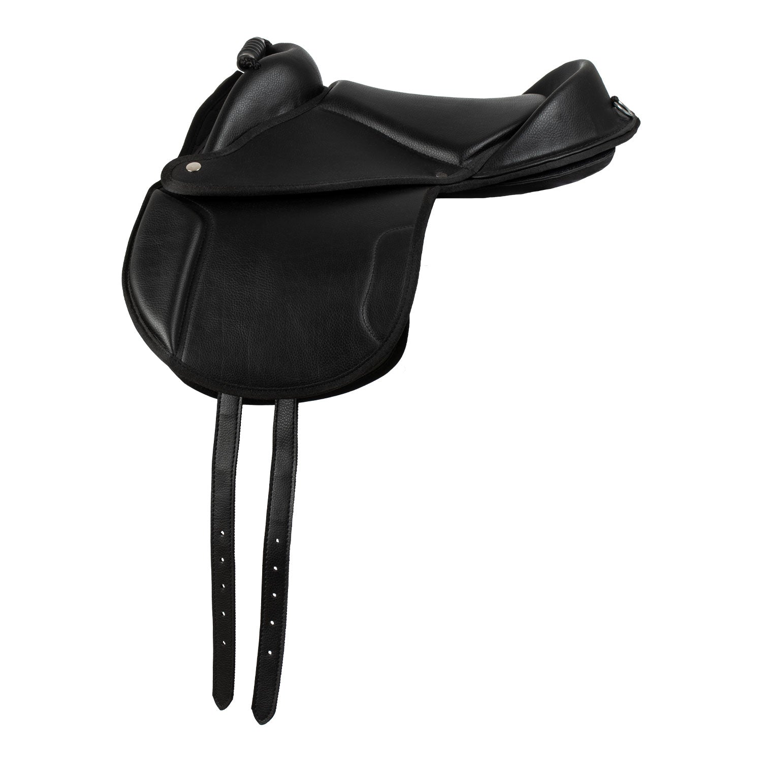 Sella inglese Pony Shetland con maniglione, completa di staffe, staffili e sottopancia.