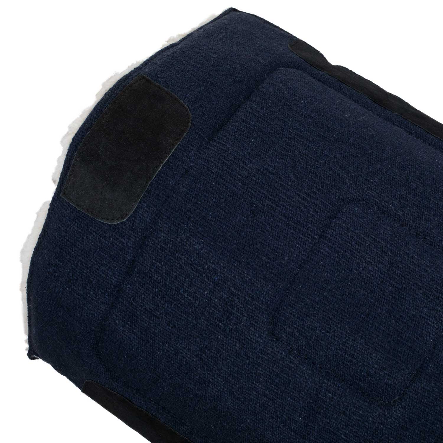 La parte a contatto con la pelle del cavallo è in morbido montone sintetico, per allontanare l'umidità e offrire maggior comfort.