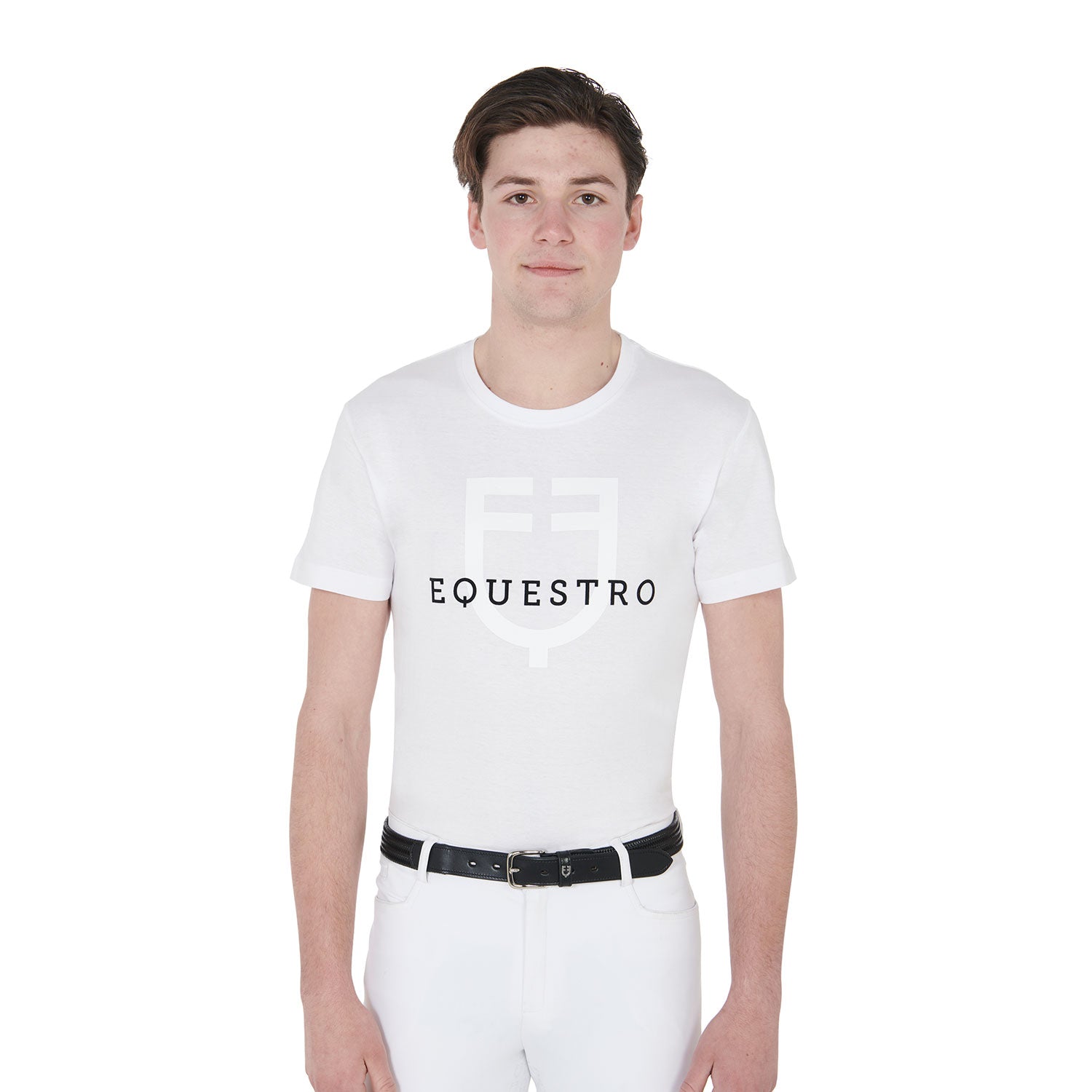 T-shirt uomo slim fit in cotone a mezza manica con logo e scritta Equestro stampati sul petto.