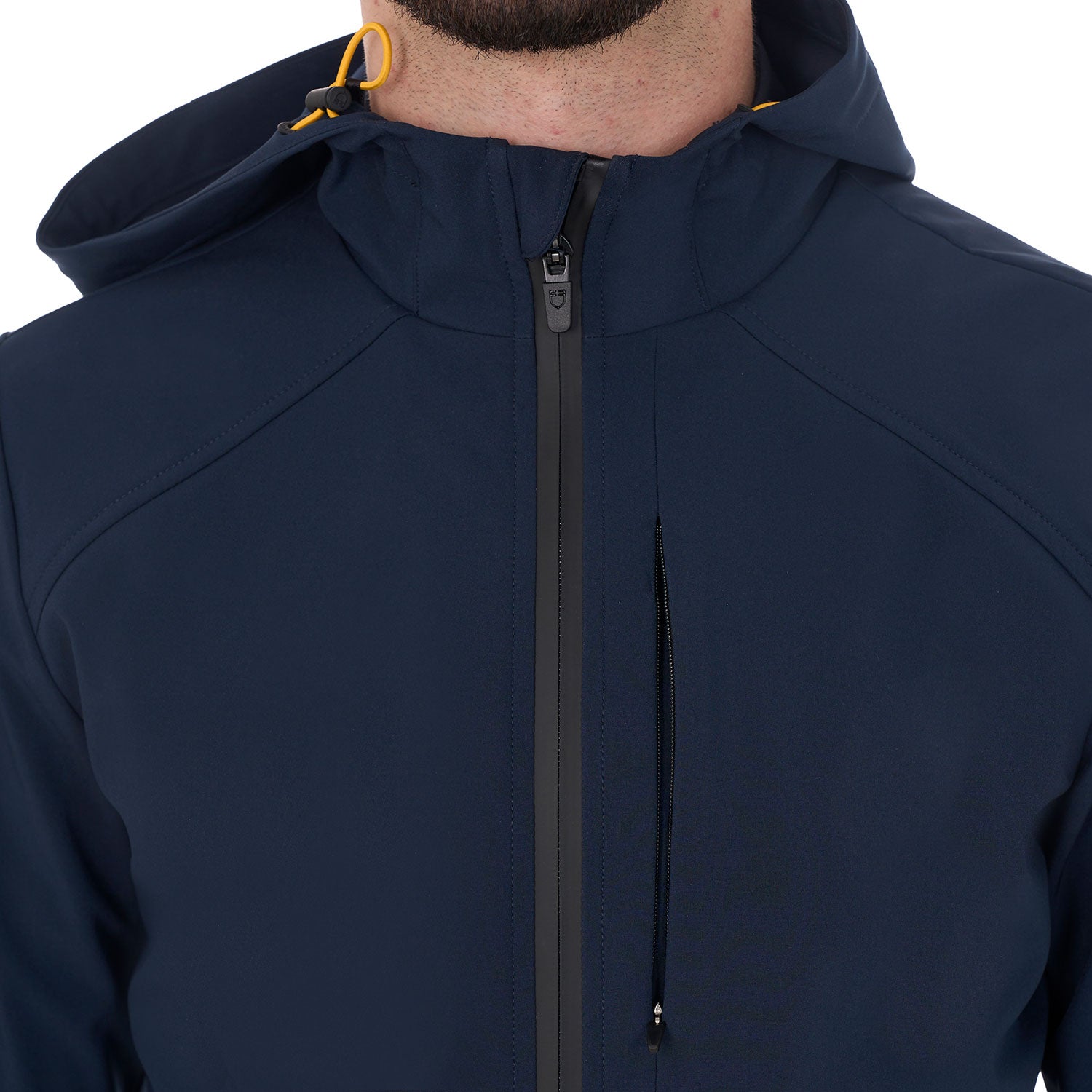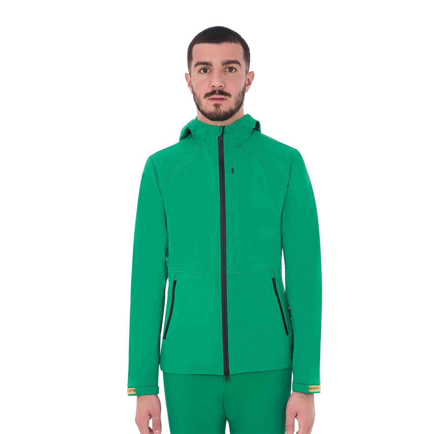 Giacca softshell uomo realizzata in tessuto tecnico traspirante e antibatterico.
