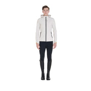 Dotata di cappuccio, zip antivento con doppio cursore, coulisse alla vita e polso regolabile con strappo.